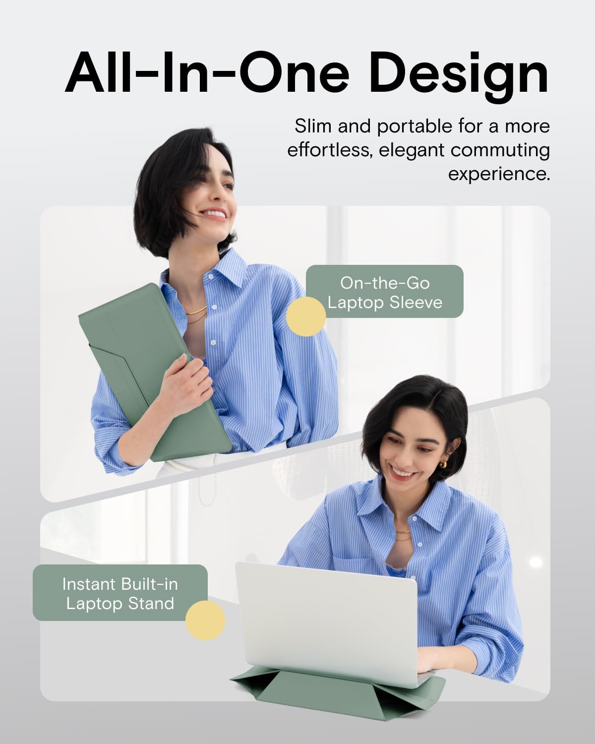 MOFT Laptop Carry Sleeve, 2-in-1 Laptop Bag & Stand for 14" MacBook Air/Pro & Dell/HP/Lenovo/Asus, Stylish Slim Computer Sleeve Bag with Expandable Storage for Computer Accessories, Seafoam