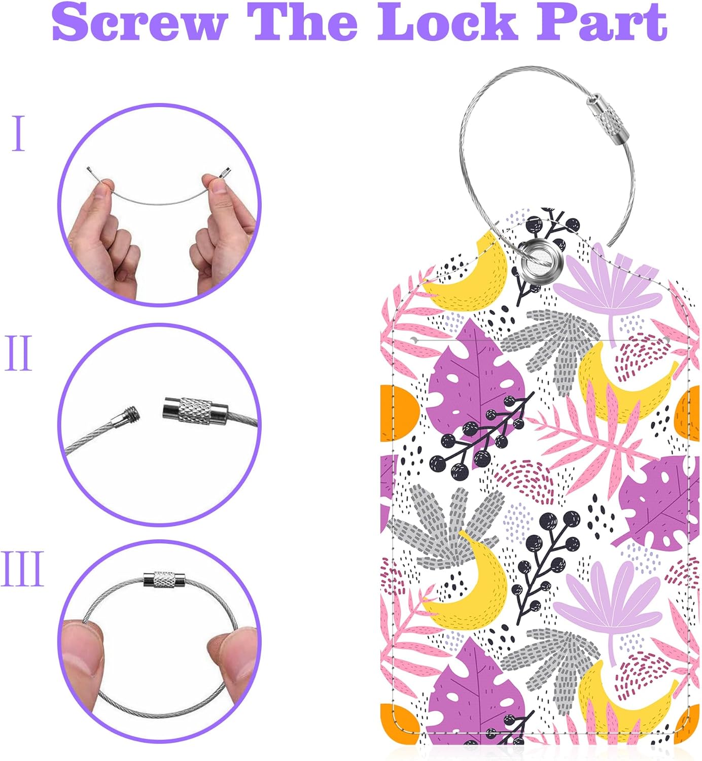Tropical Plants Leaves Fruits Luggage Tags 2PCS PU Leather Suitcases Tag with Stainless Steel Loop and Privacy Name Address Cover Label Card for Women Men Travel
