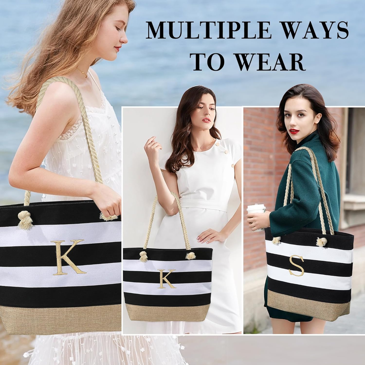 - 【Unique Embroidered Initials】: One of the features of this beach bag is the embroidered initials. You can choose the corresponding embroidered letter according to the recipient's first or last name, making the gift more personal and unique. Whether for wives, girlfriends, mothers or sisters, bridesmaid, this beach bag shows thoughtfulness and respect for their individuality, making them feel unique love and special treatment