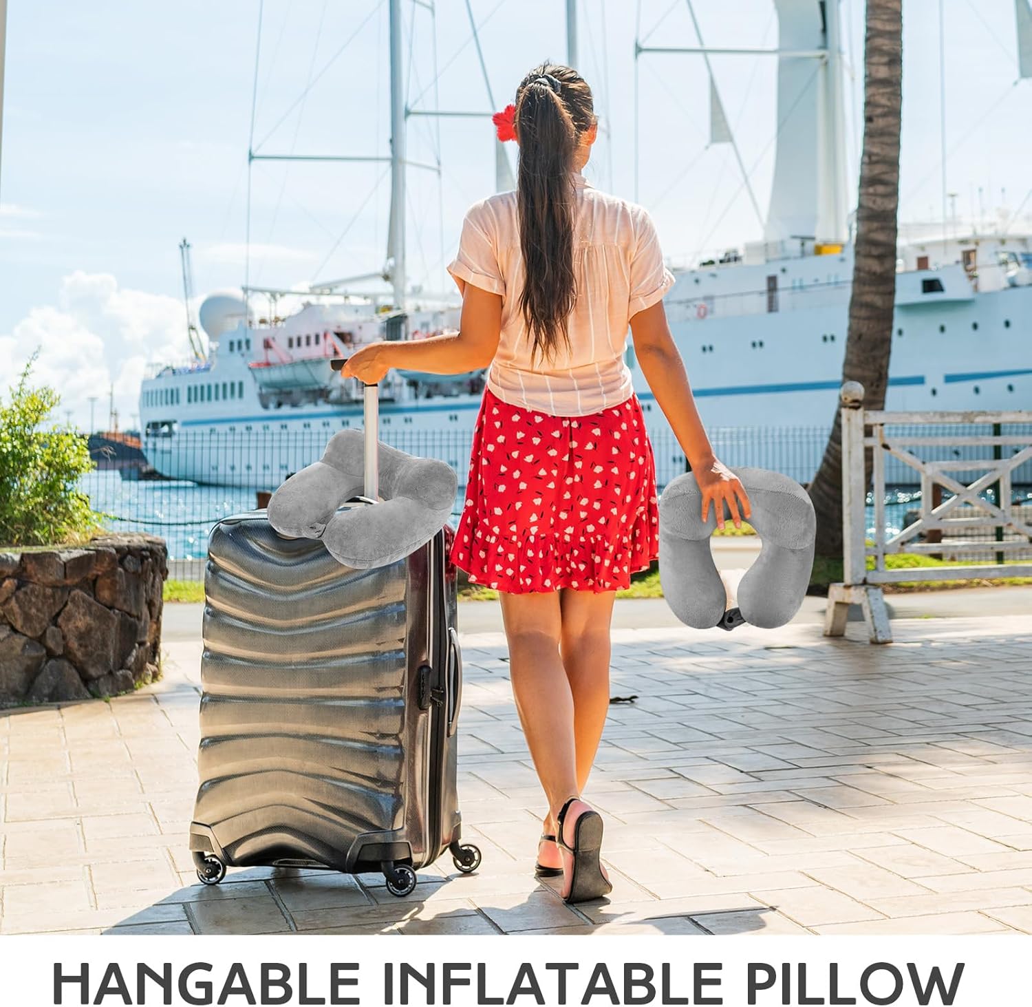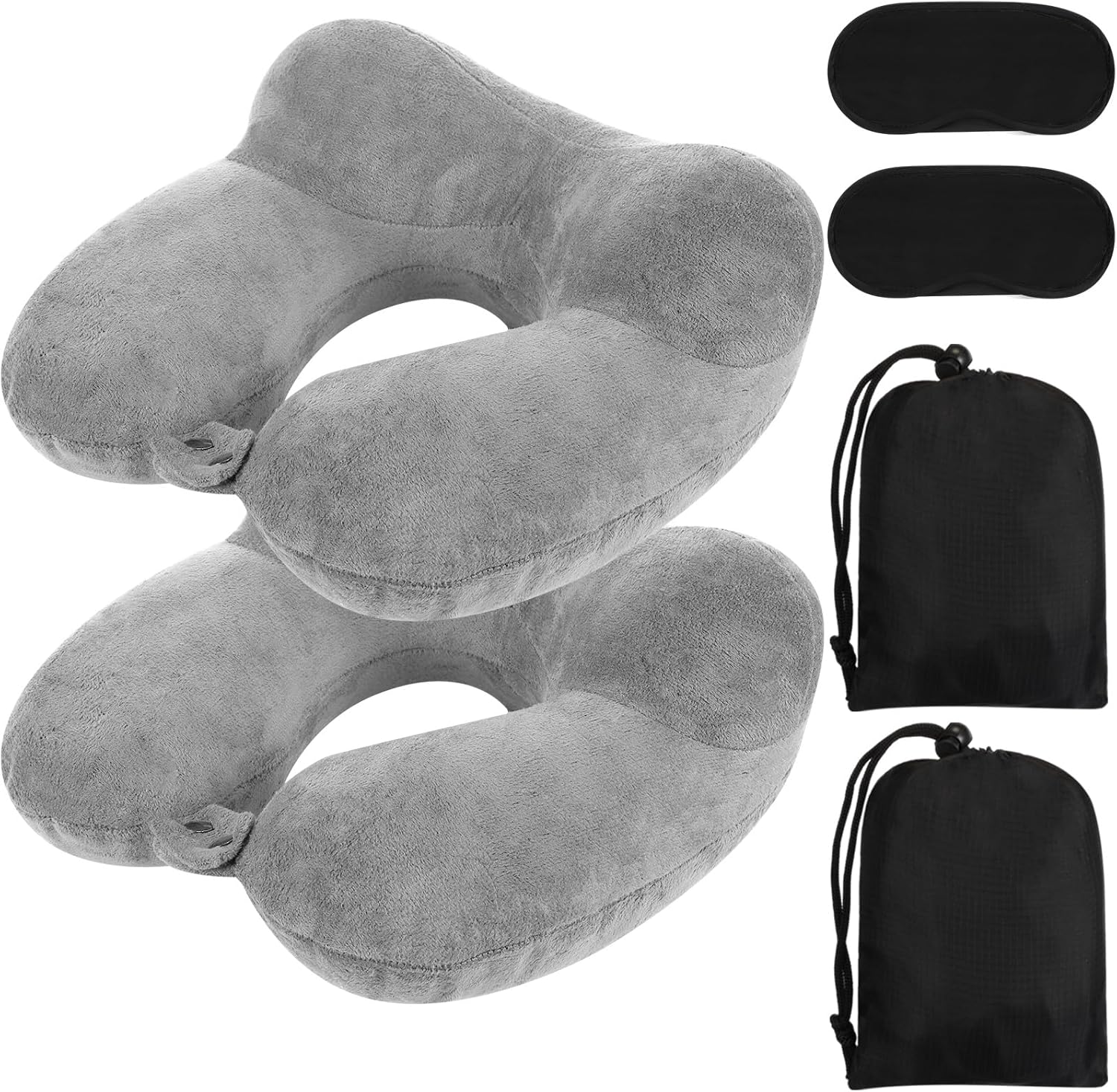 Sintuff 2 Pack Inflatable Travel Pillow for Airplanes Inflatable Neck Flight Pillows with Compact Bag and Blindfold for Traveling, Airplane, Train, Car, Office(Gray)