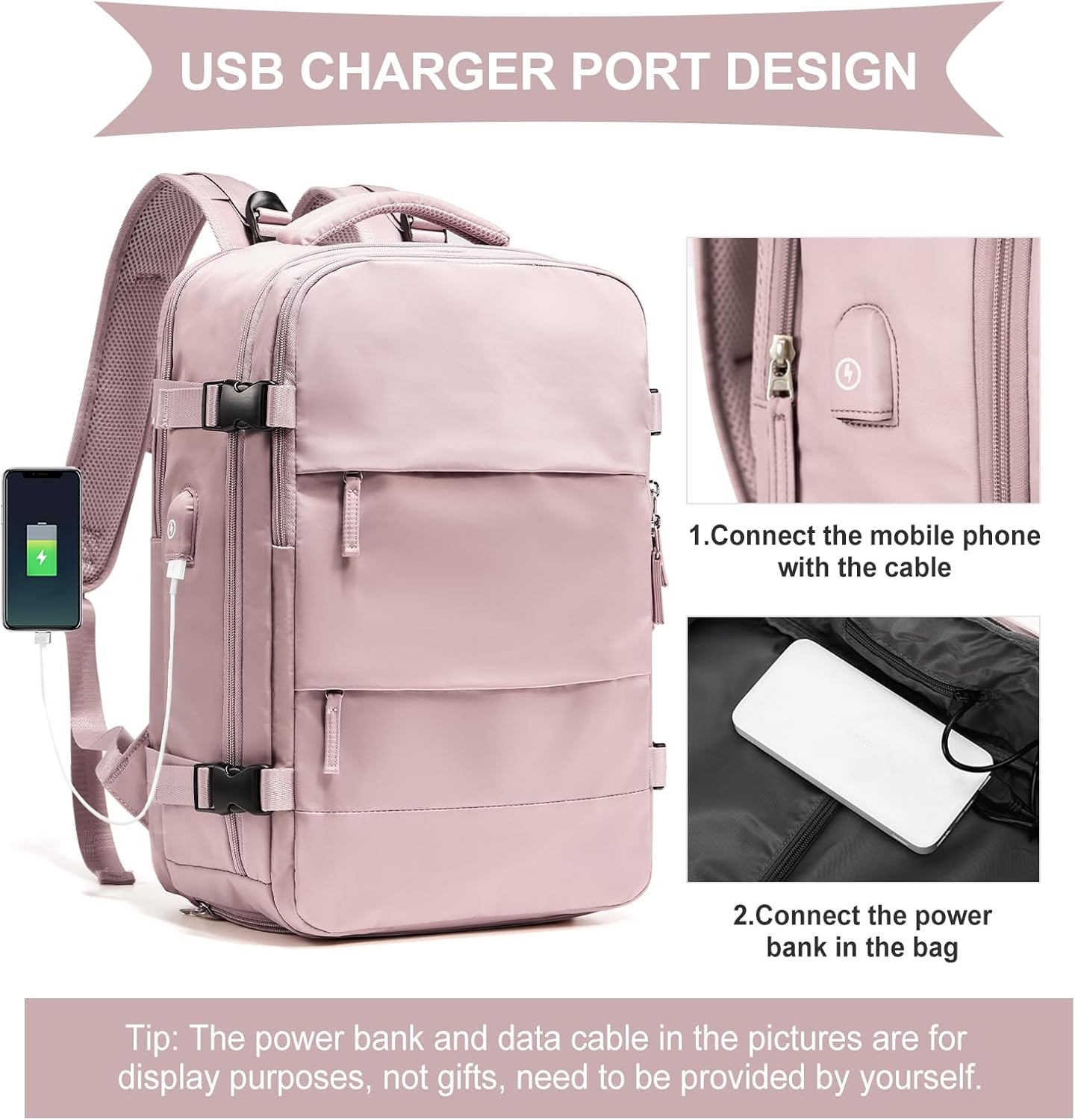 coowoz Large Travel Backpack For Women Men,Carry On Backpack Flight Approved,Hiking Backpack Waterproof Outdoor Rucksack Casual Daypack Fit 15.6 Inch Laptop Shoes Compartment (Pink Purple-L)