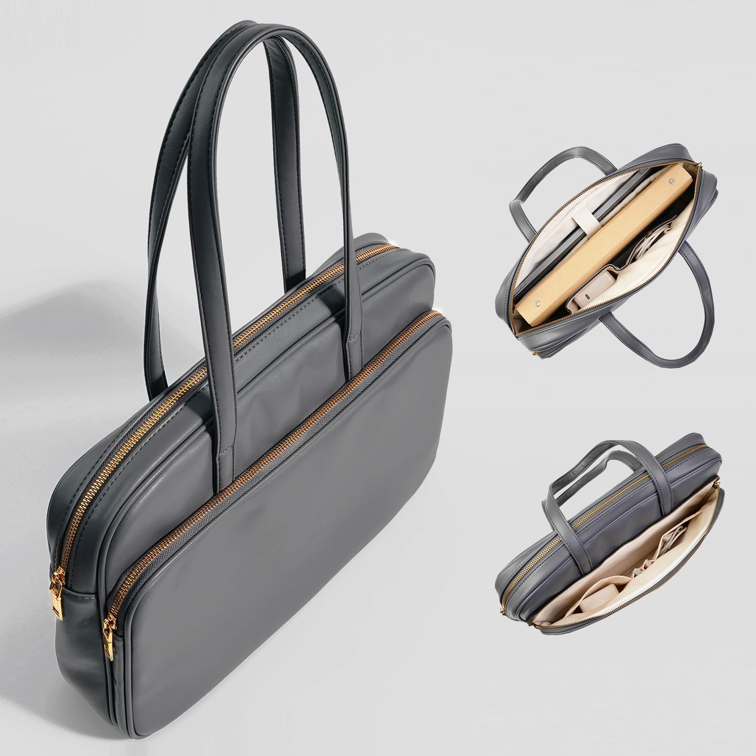 - Premium Durable Material Laptop Bag/Briefcase: This computer tote is crafted in durable, water-resistant, scratch-resistant PU leather and cotton & linen lining. Top smooth metal zipper for easy opening