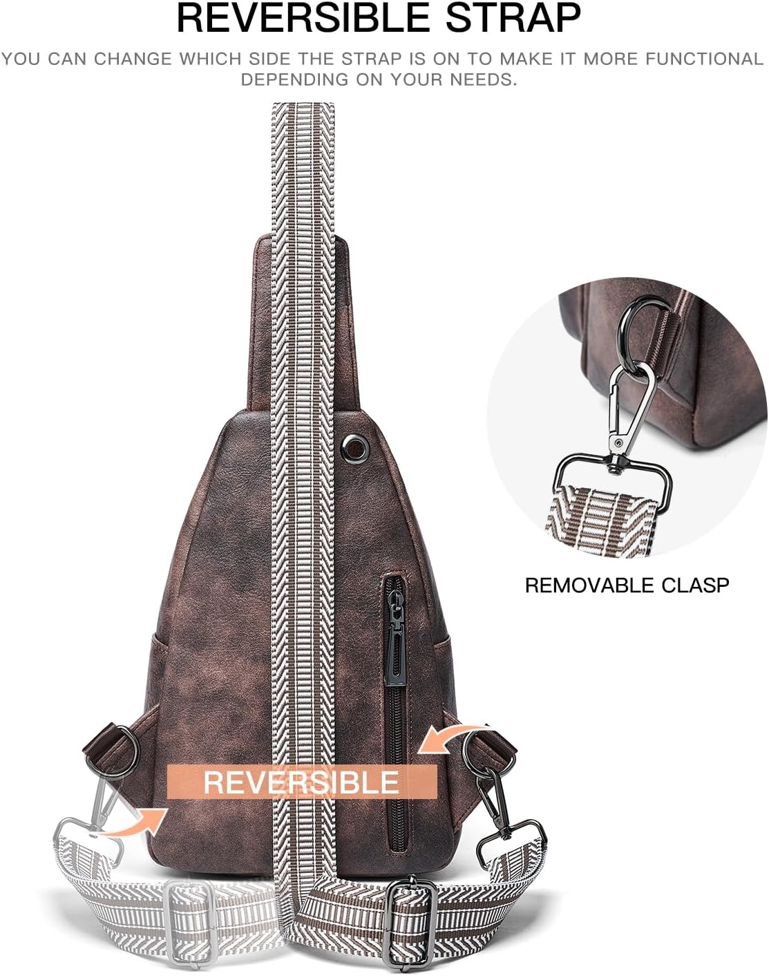 - 【LIGHTWEIGH & SECURE & COMFORTABLE】The 3 advantages: 1.Travel purse is lightweight and compact, offering plenty of space to transport the travel essentials. 2.The front sling bag for women enable you to keep your handbag in front of your chest at all times, the anti theft back pocket make security a priority. 3.Leather sling bag for women is comfortable to wear since the weight is evenly distributed across your body.