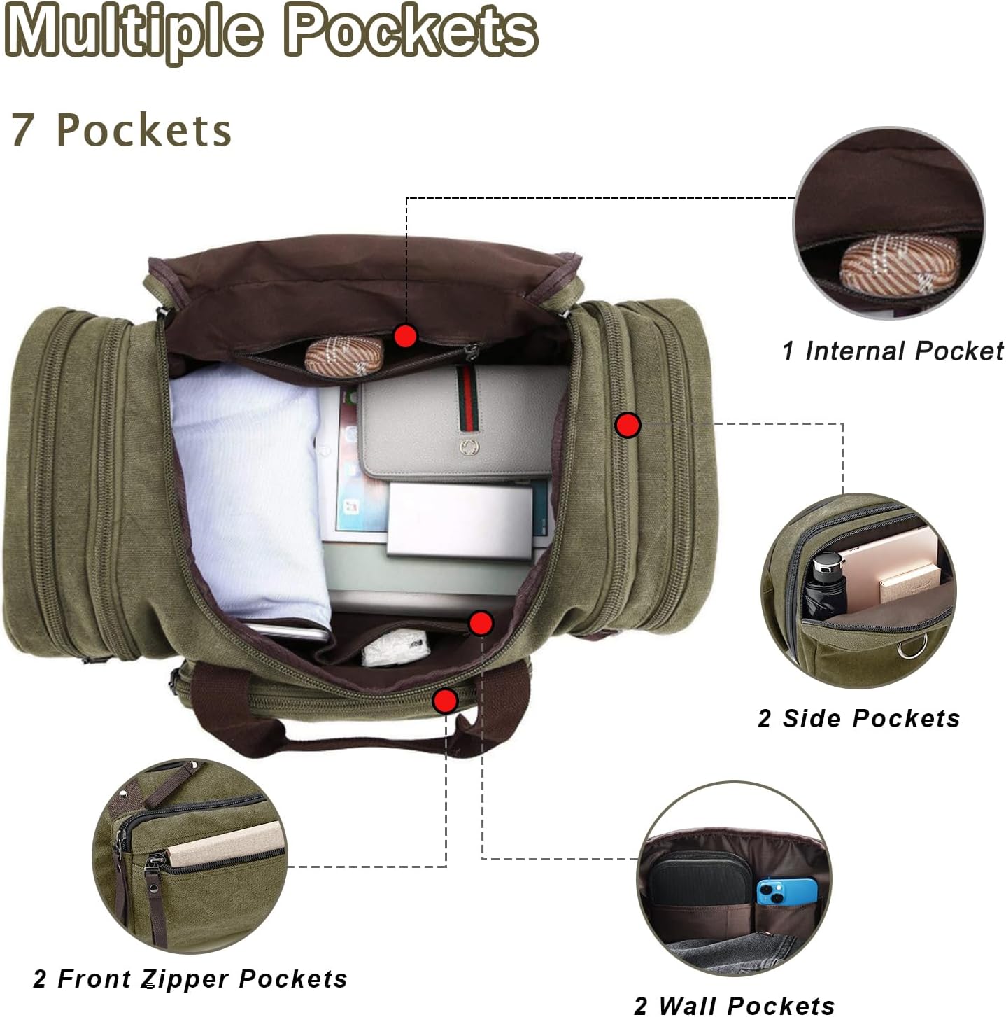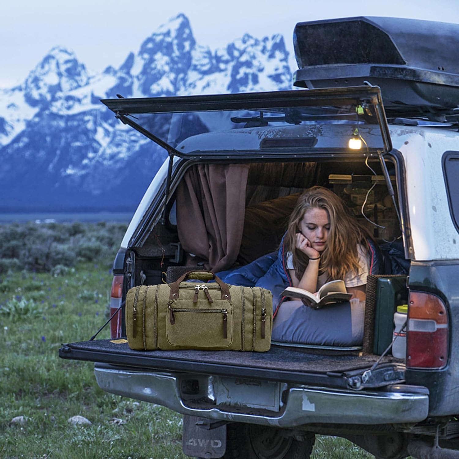 - 【Quality Material】The travel duffel bags are made of canvas material, abrasion and tear resistant, flexible zipper for quick opening and closing, padded base design keeps the contents of the canvas duffle bag protected from rough terrain and hard knocks