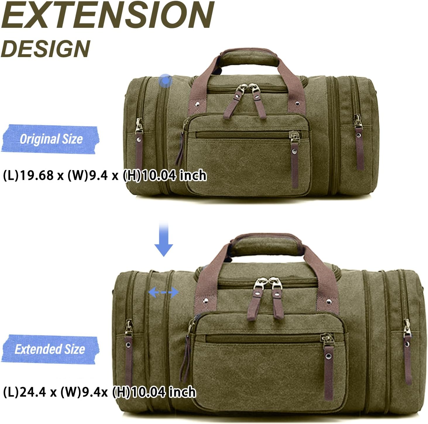 Felipe Varela Green 40L Canvas Duffel Bag for Men, Expandable Travel Gym Overnight Carry On Bag
