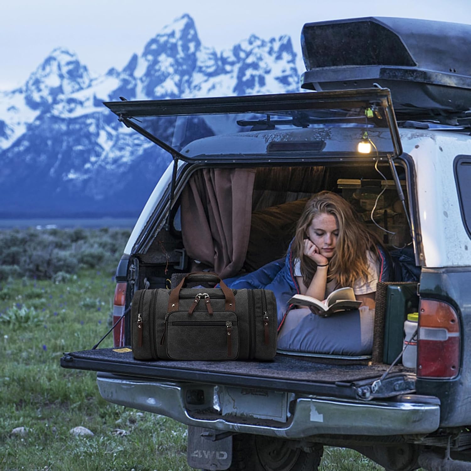 - 【Quality Material】The travel duffel bags are made of canvas material, abrasion and tear resistant, flexible zipper for quick opening and closing, padded base design keeps the contents of the canvas duffle bag protected from rough terrain and hard knocks