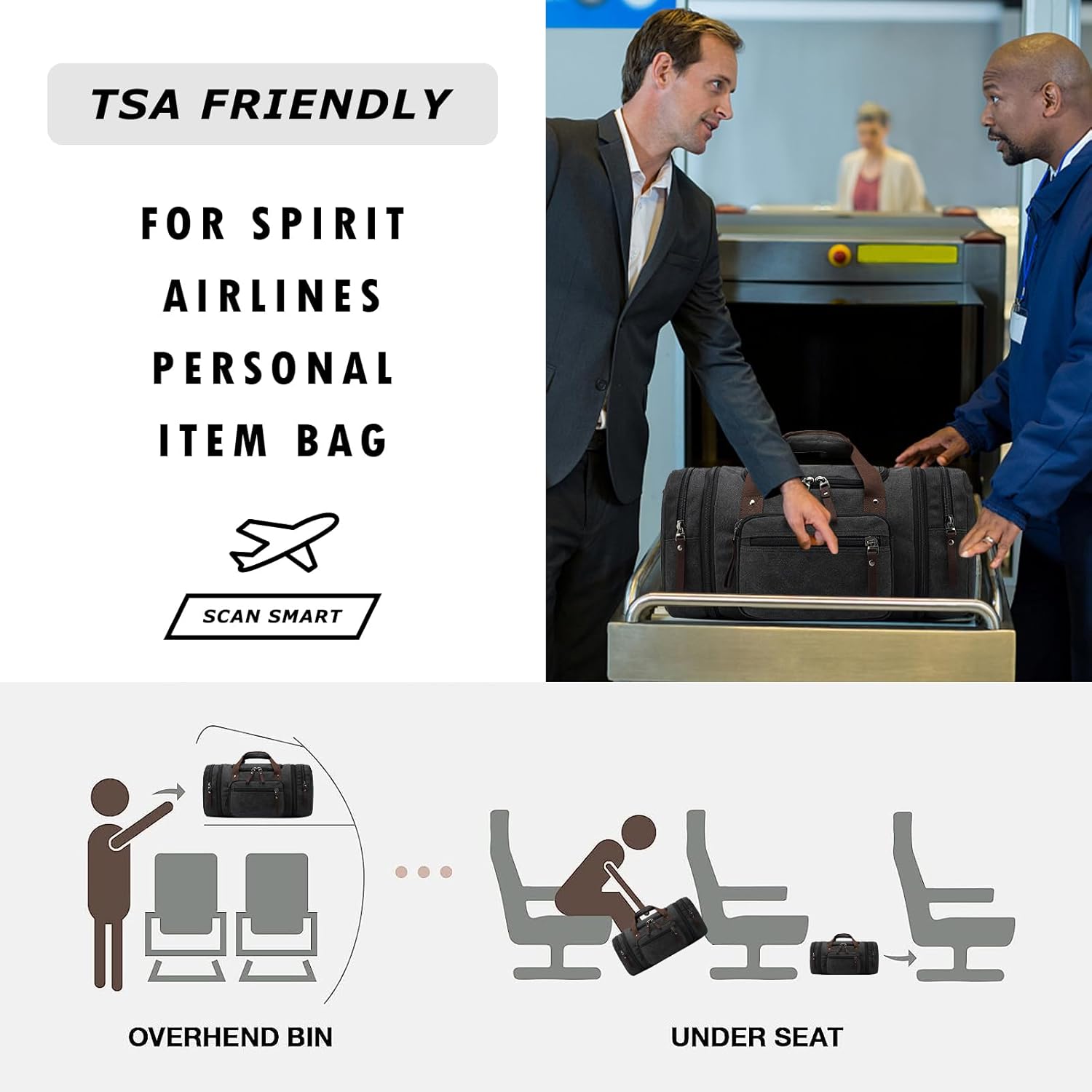 Felipe Varela Duffle Bag for Men, Canvas Expandable Duffel Bag for Travel, Mens Carry On Luggage Bags Traveling Weekender Gym Overnight Duffel Bags for Airplanes, Black