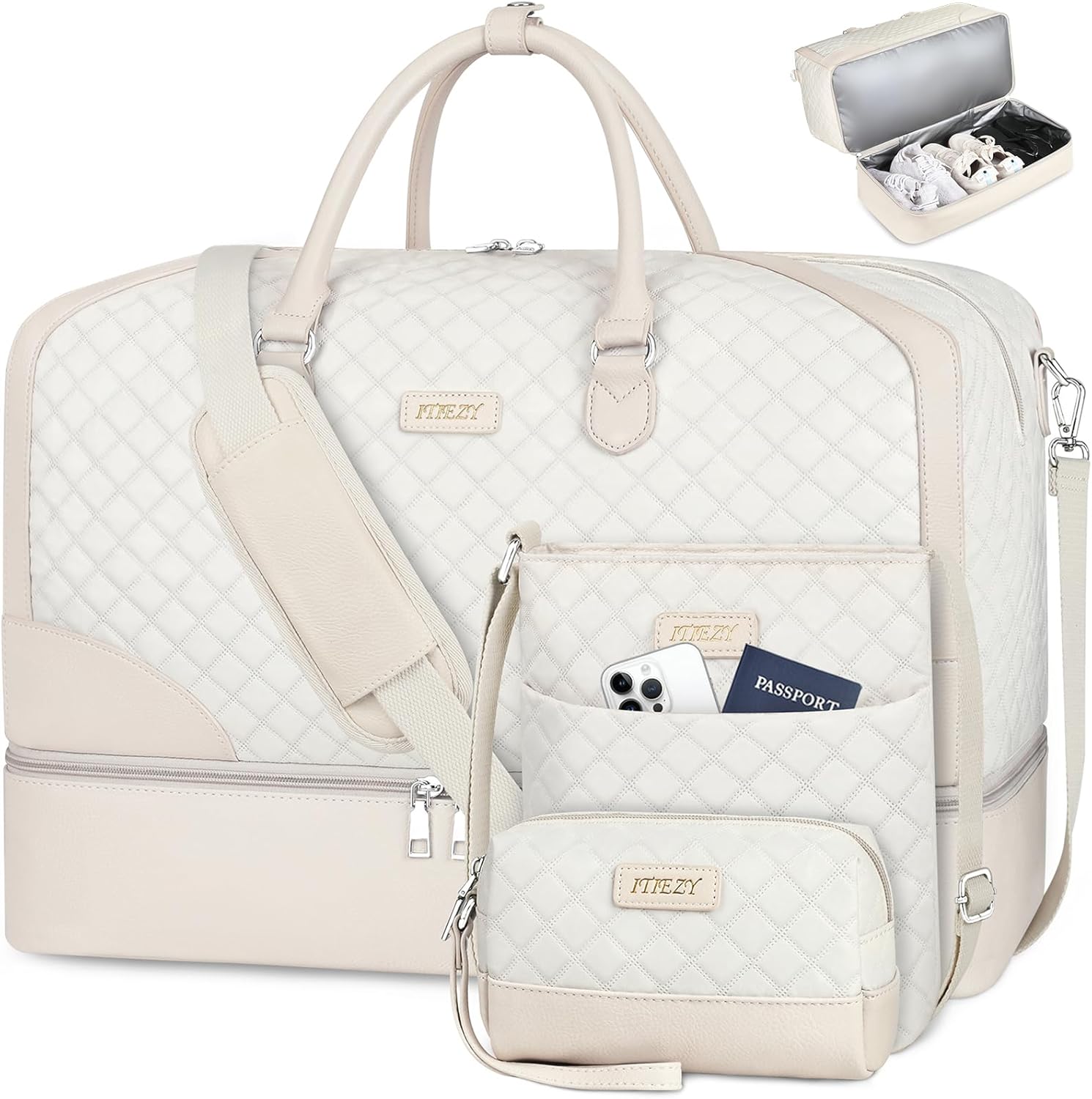 Weekender Bag for Women, Travel Duffel Bag Carry On Overnight Bag with Shoe Compartment Large Nylon Travel Weekend Tote Bag