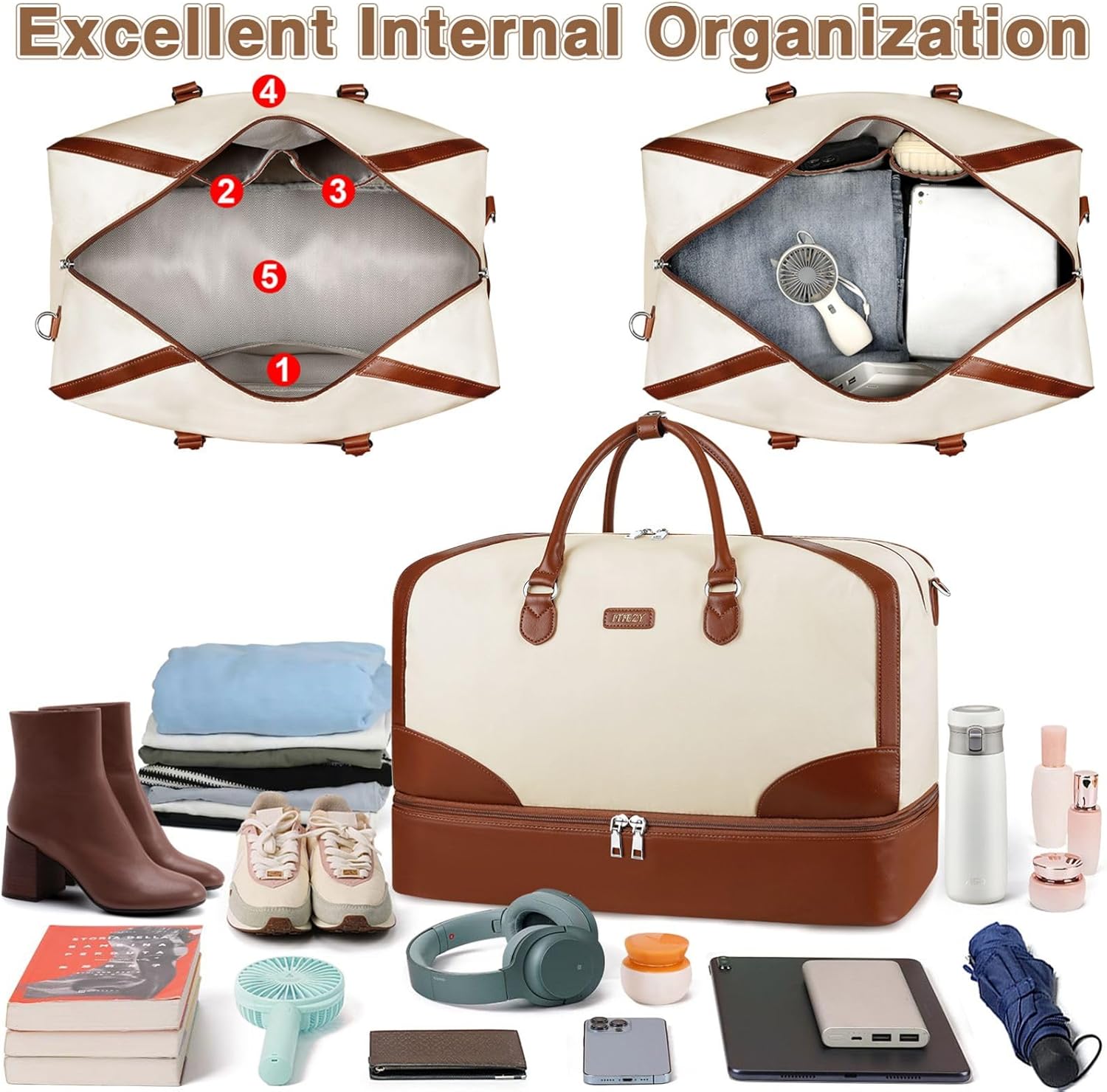 Weekender Bag for Women, Travel Duffel Bag Carry On Overnight Bag with Shoe Compartment Large Nylon Travel Weekend Tote Bag