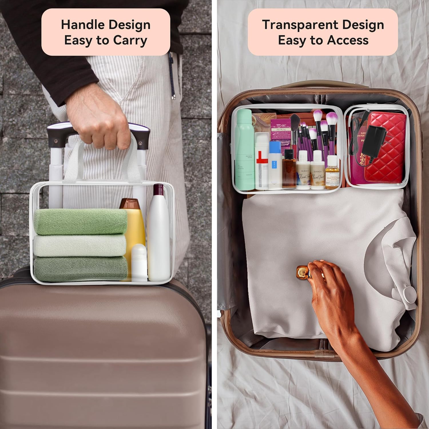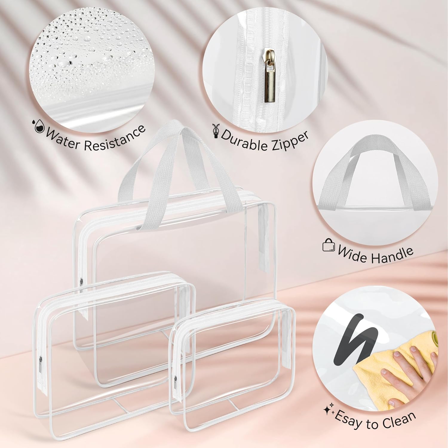 - 【TSA Approved】 The TSA approved clear bag strictly follow 3-1-1 liquid regulations, you won't have to worry pass through airport security. Waterproof PVC material makes it easier to clean, durable and scratch-resistant, and any stains on it can be easily wiped off with a towel.