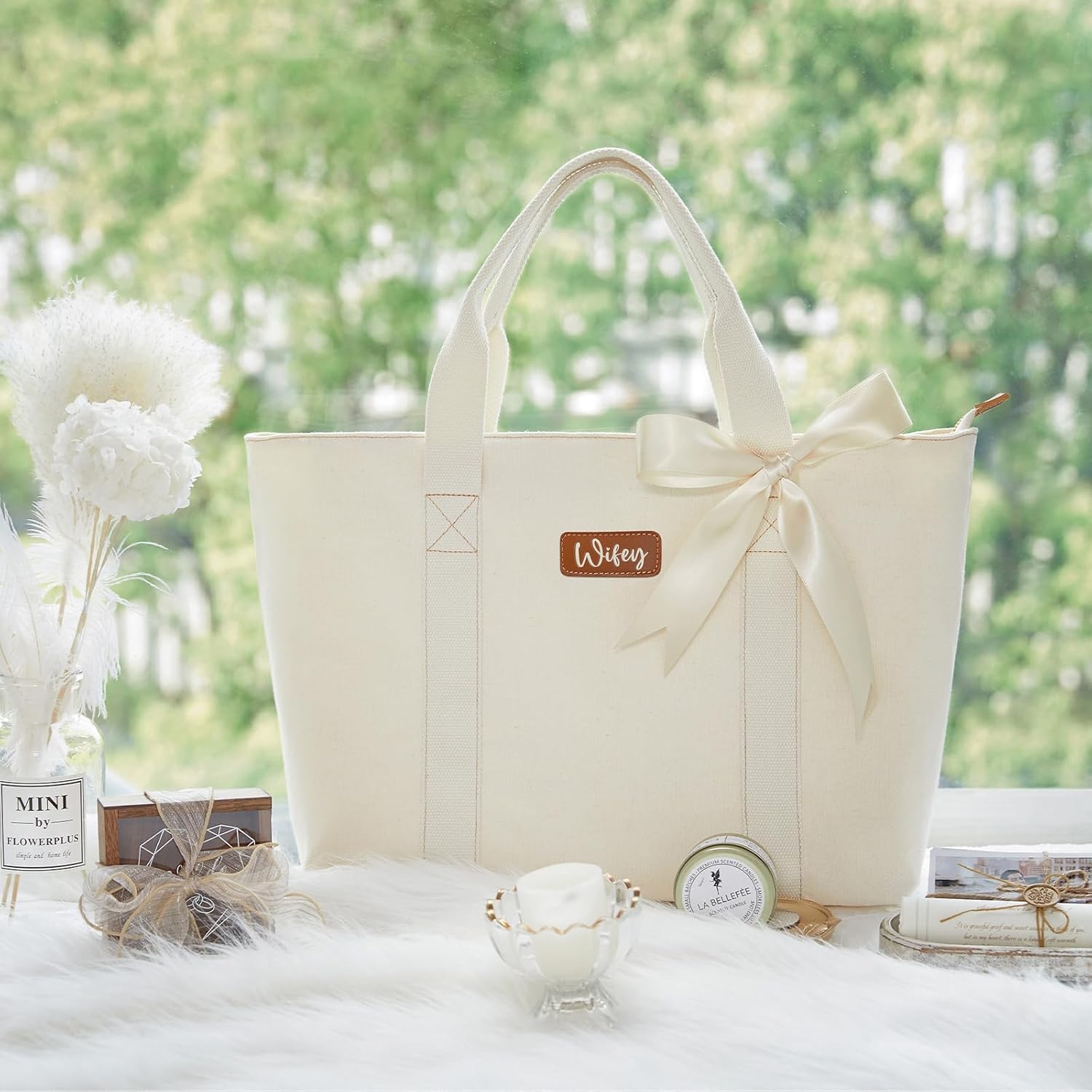 AW BRIDAL Monogram Canvas Tote Bag for Chrismas, Bridal Shower, Retirement, Birthday Gifts for Women Mom Wife Sister Friends