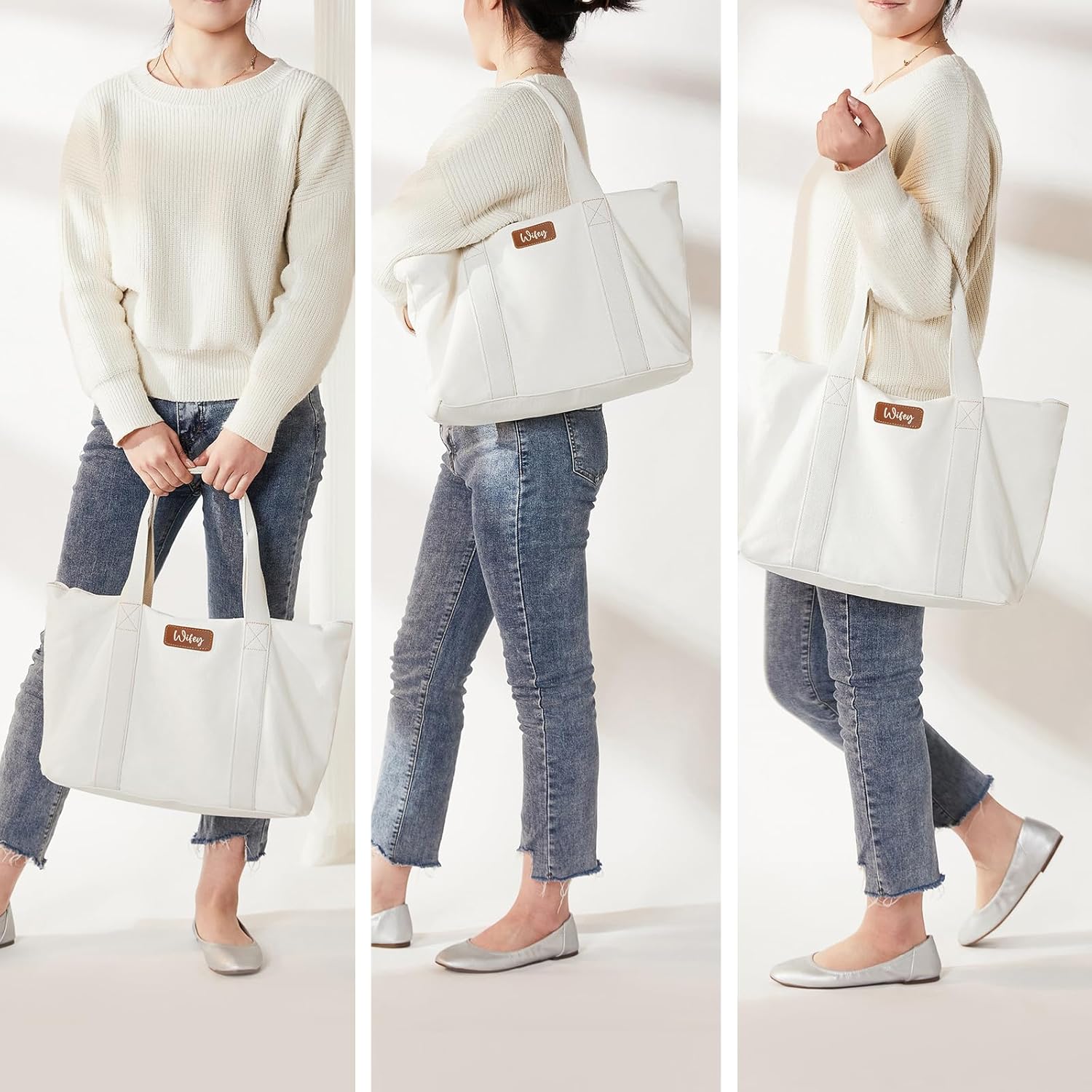 - 【Large Capacity】About 20*5*12 inches, big enough to hold all you need for the day, tablets, books, folding umbrellas, clothes, water glasses, makeup, purses, etc. Classic tote bag style, it can be carried on one shoulder, slung across the shoulder, carried in the hand, or over the arm, simple and never out of date.