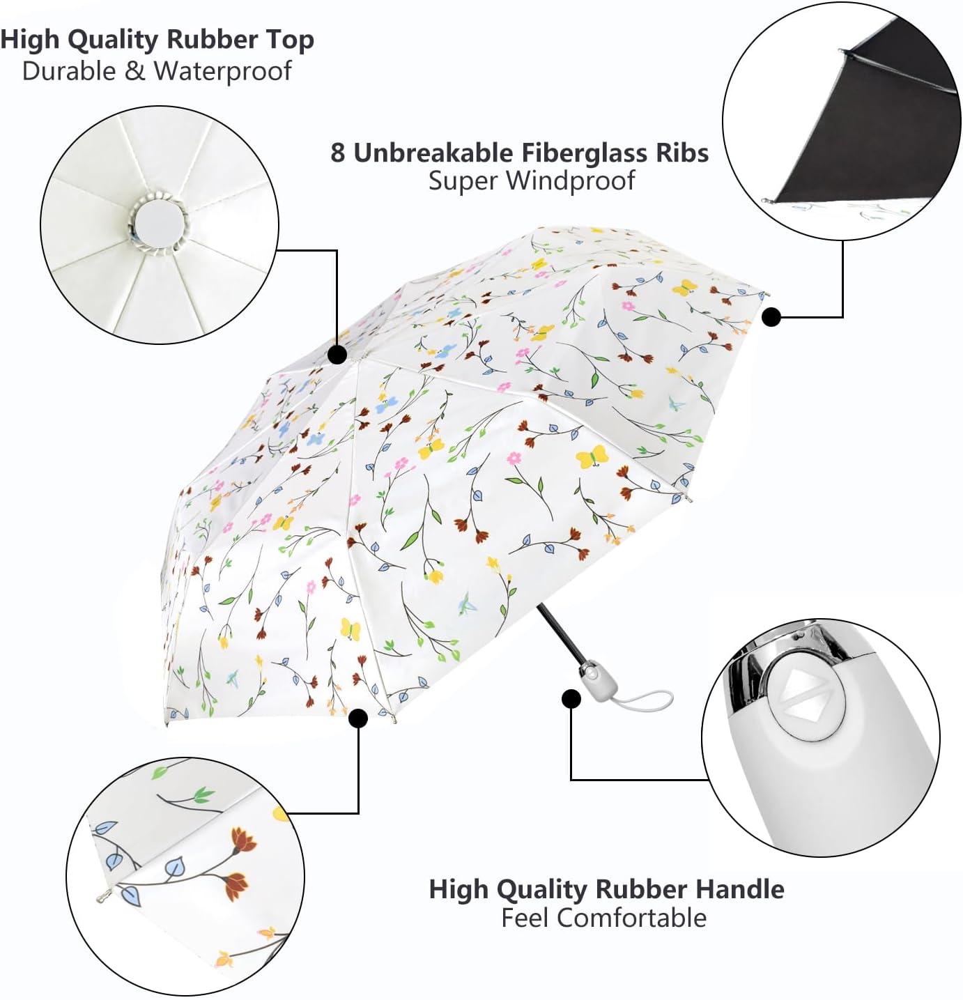 - 𝐎𝐩𝐞𝐧/𝐂𝐥𝐨𝐬𝐞 𝐰𝐢𝐭𝐡 𝐎𝐧𝐞 𝐓𝐨𝐮𝐜𝐡: This Travel Umbrella Rain Umbrella is with One touch design, Automatically open and close by push the button of the handle with one hand, Very convenient when go out or quickly enter into a car, building or tent.With 37 inch,Fitting Perfectly in Your Bag,Suitcase,or Kids Backpack.It is Good Gift Choice for Parents,Friends,Colleagues,Lovers