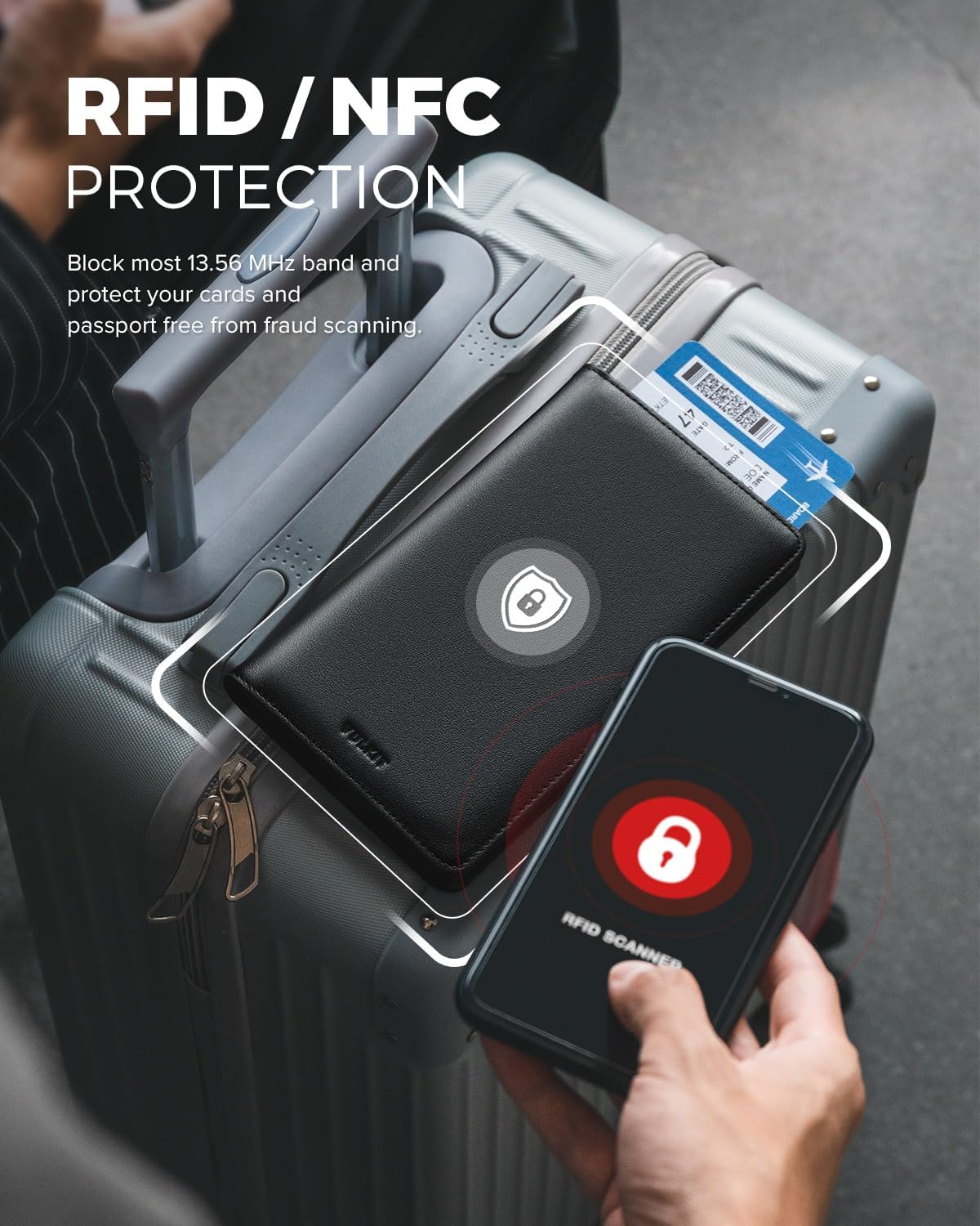 • ADVANCED RFID/NFC PROTECTION: Professional tested RFID/NFC blocking material & technology keep you safe from fraud scanning.