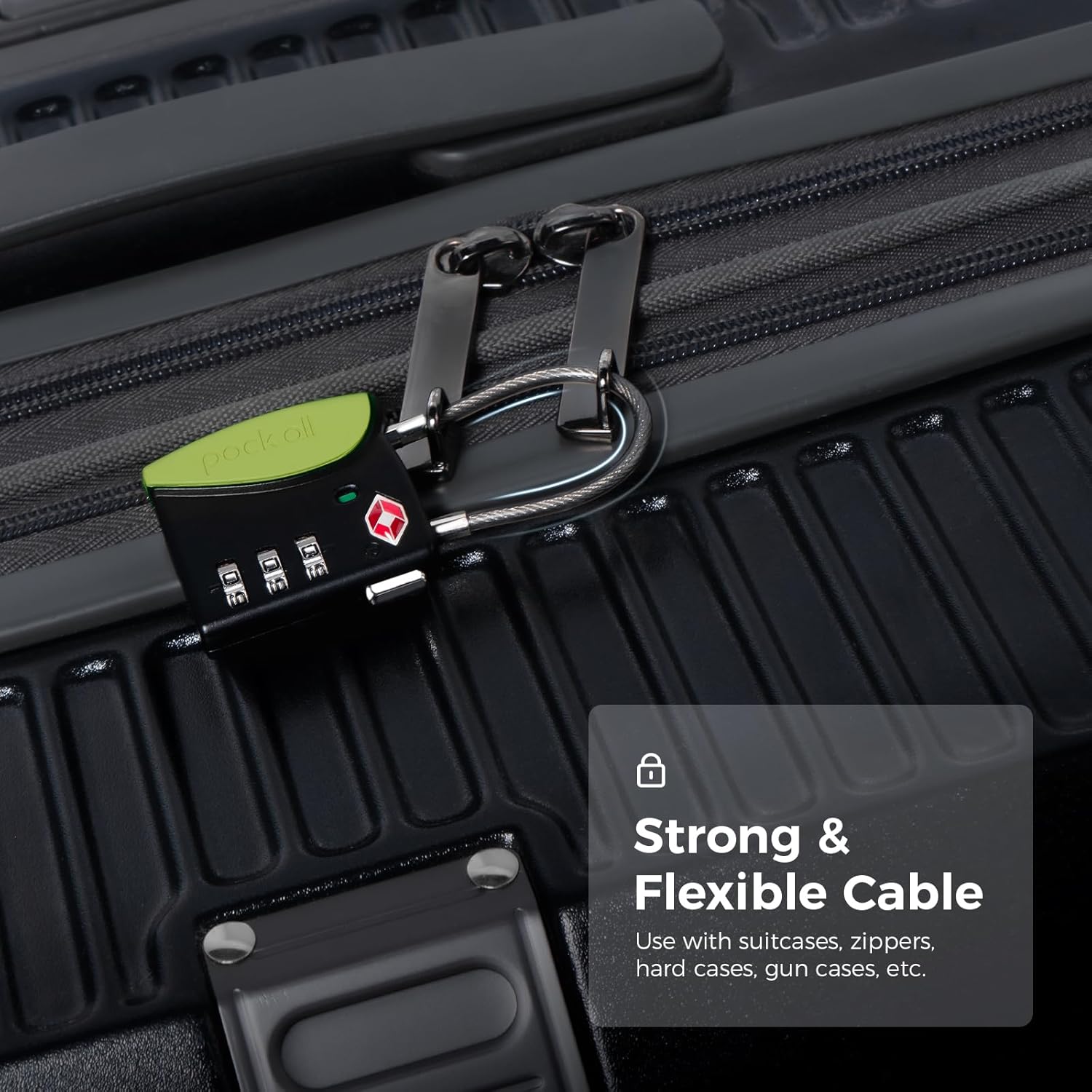 pack all TSA Approved Cable Luggage Locks, 3 Digit Combination Padlocks, Travel Lock for Suitcases & Bag, Alloy Body, Travel Accessories (1 Pack)(Apple Green)
