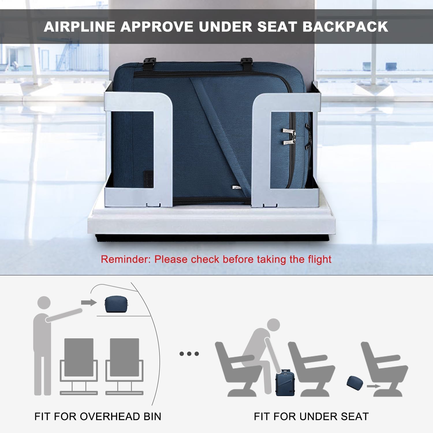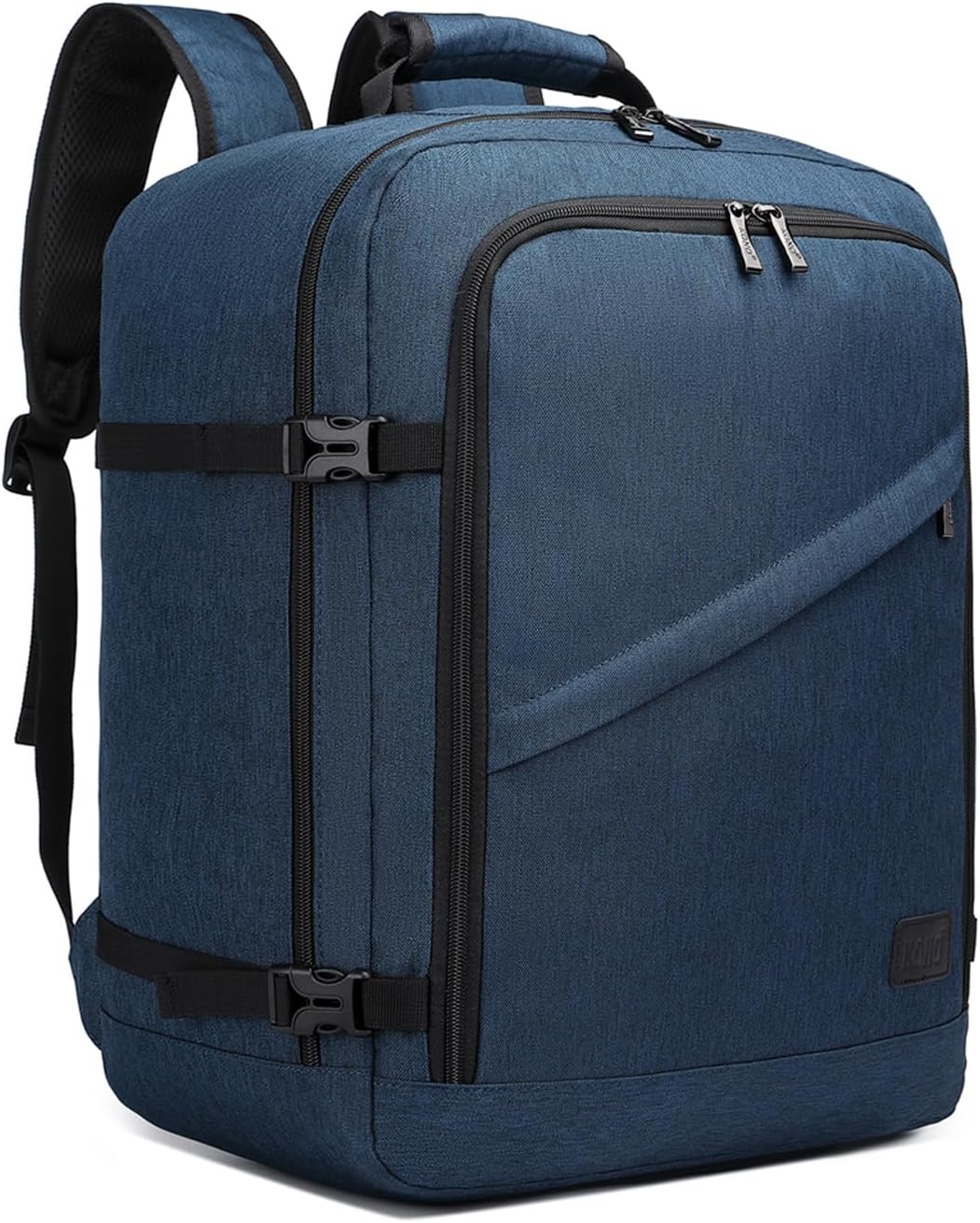 Kono Carry on Backpack, 18" Airplane Approved Under Seat Travel Backpack for Men and Women, Waterproof Lightweight Daypack for Flight 30L (Navy, Medium)
