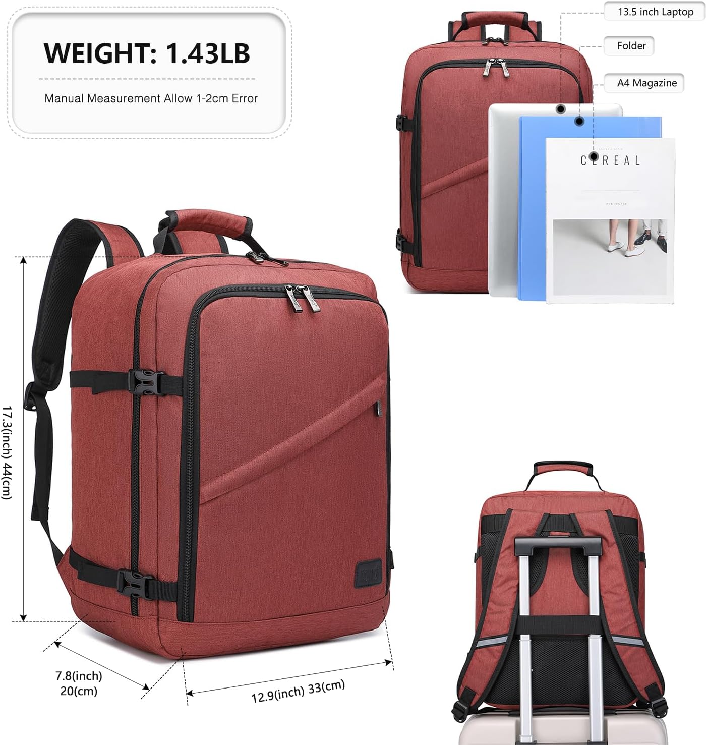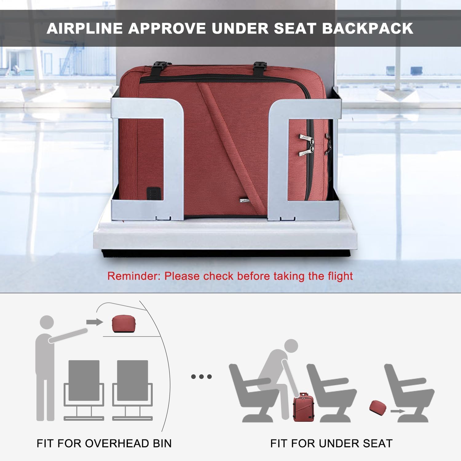 Kono Carry on Backpack, 18" Airplane Approved Under Seat Travel Backpack for Men and Women, Waterproof Lightweight Daypack for Flight 30L (Burgundy Red, Medium)