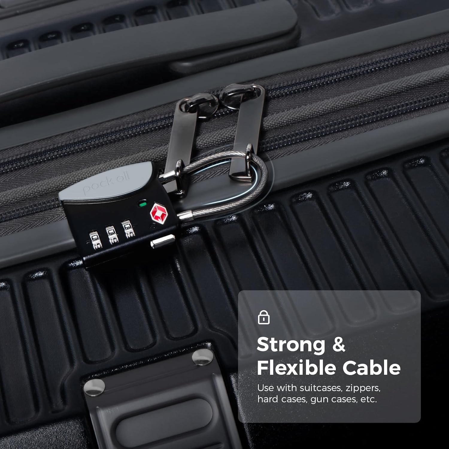 pack all TSA Approved Cable Luggage Locks, 3 Digit Combination Padlocks, Travel Lock for Suitcases & Bag, Alloy Body, Travel Accessories (4 Pack)(Grey)