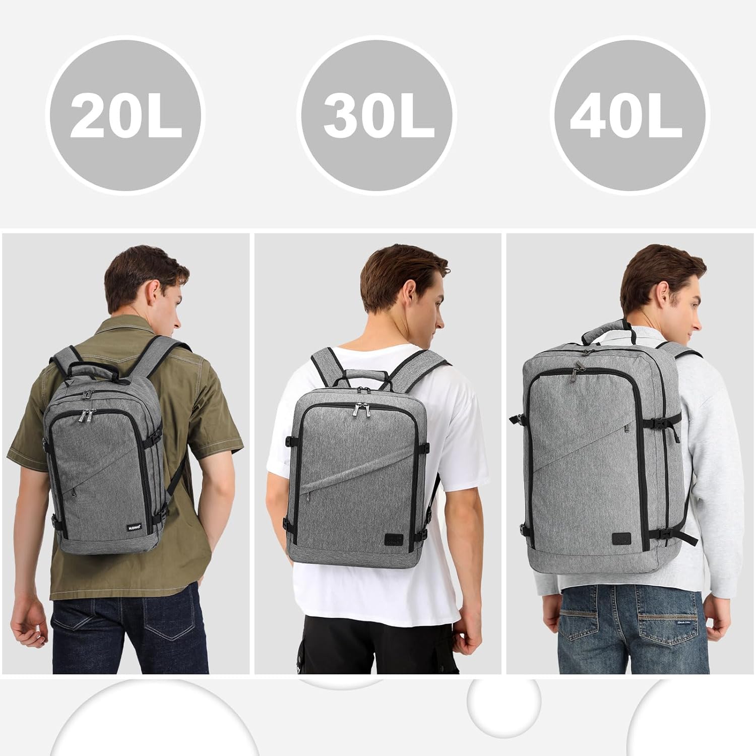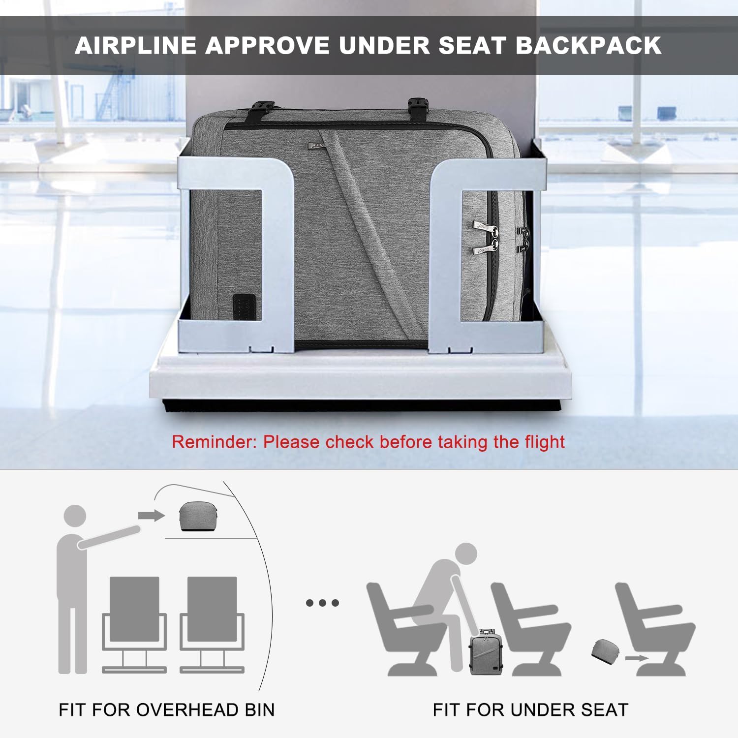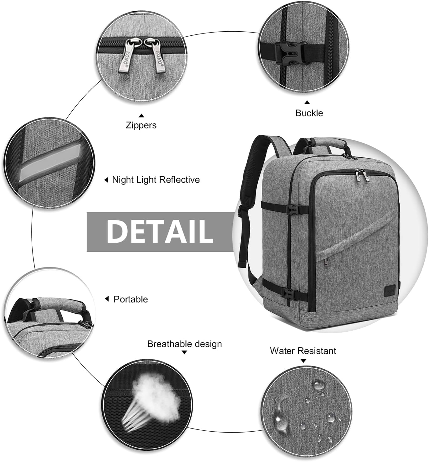 Kono Carry on Backpack, 18" Airplane Approved Under Seat Travel Backpack for Men and Women, Waterproof Lightweight Daypack for Flight 30L (Grey, Medium)