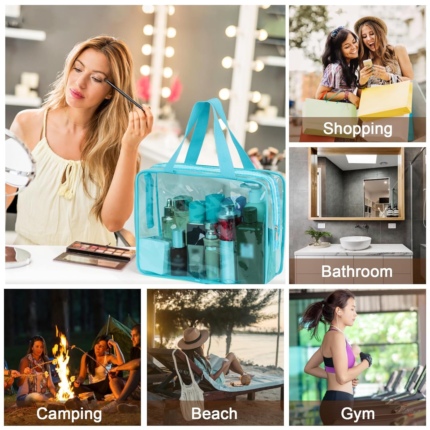 - DIFFERENT SIZE: Includes 1 large (11.81" x 3.94" x 8.66"), 2 medium (8.66" x 1.96" x 7.87") and 3 small (7.08" x 1.57" x 5.51") clear makeup bags for organizing toiletries and cosmetics. Toiletry bag is suitable for travel, gym, bathroom organization