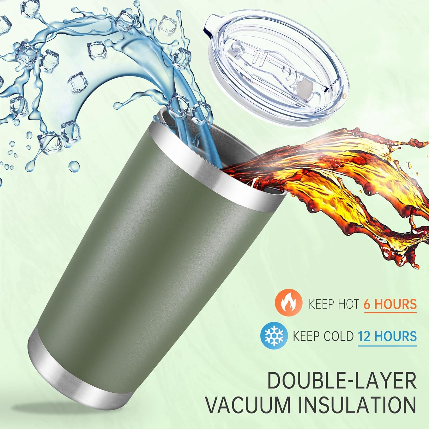 20 oz Tumblers Bulk Stainless Steel Tumbler with Lid Double Wall Vacuum Insulated Coffee Mug 20oz Powder Coated Cup for Hot and Cold Drinks, Army Green, 6 pack