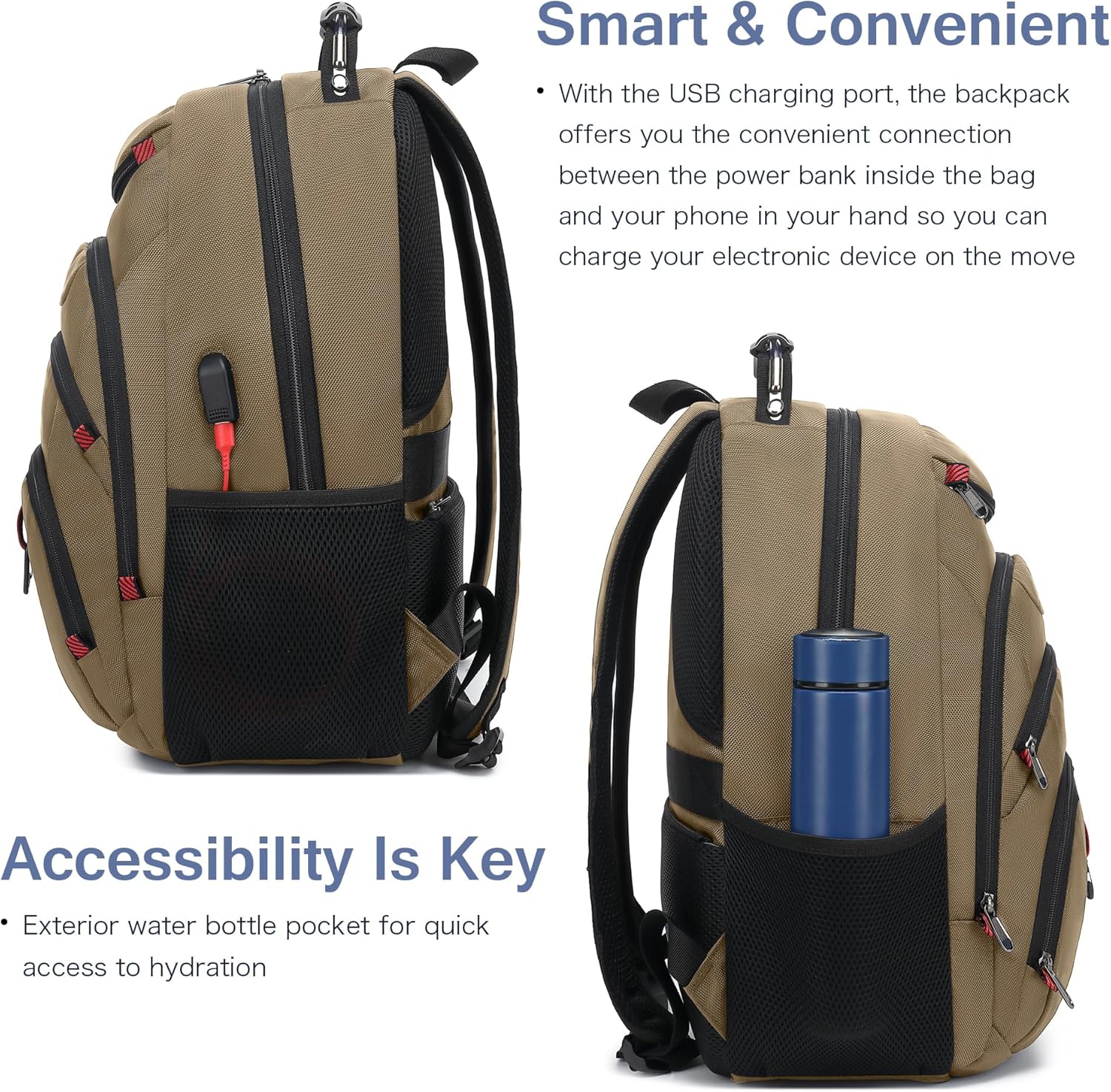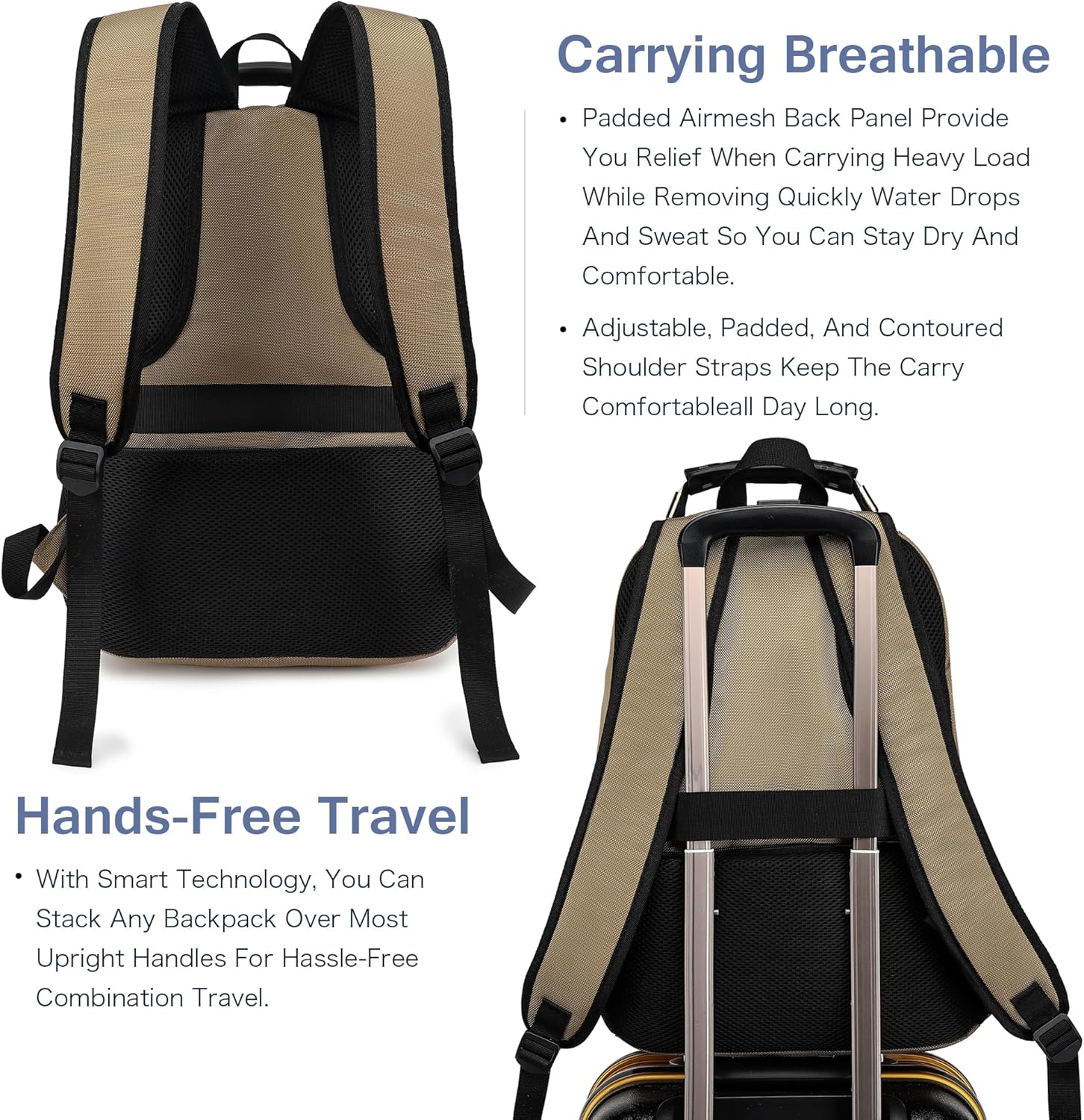 Boavan Laptop Backpack for men, 15.6 inch Laptop Bag with USB Port, Waterproof Travel Work Backpack Purse, Anti-Theft Teacher Nurse Doctor Casual Bookbags Office Business backpack,Khaki