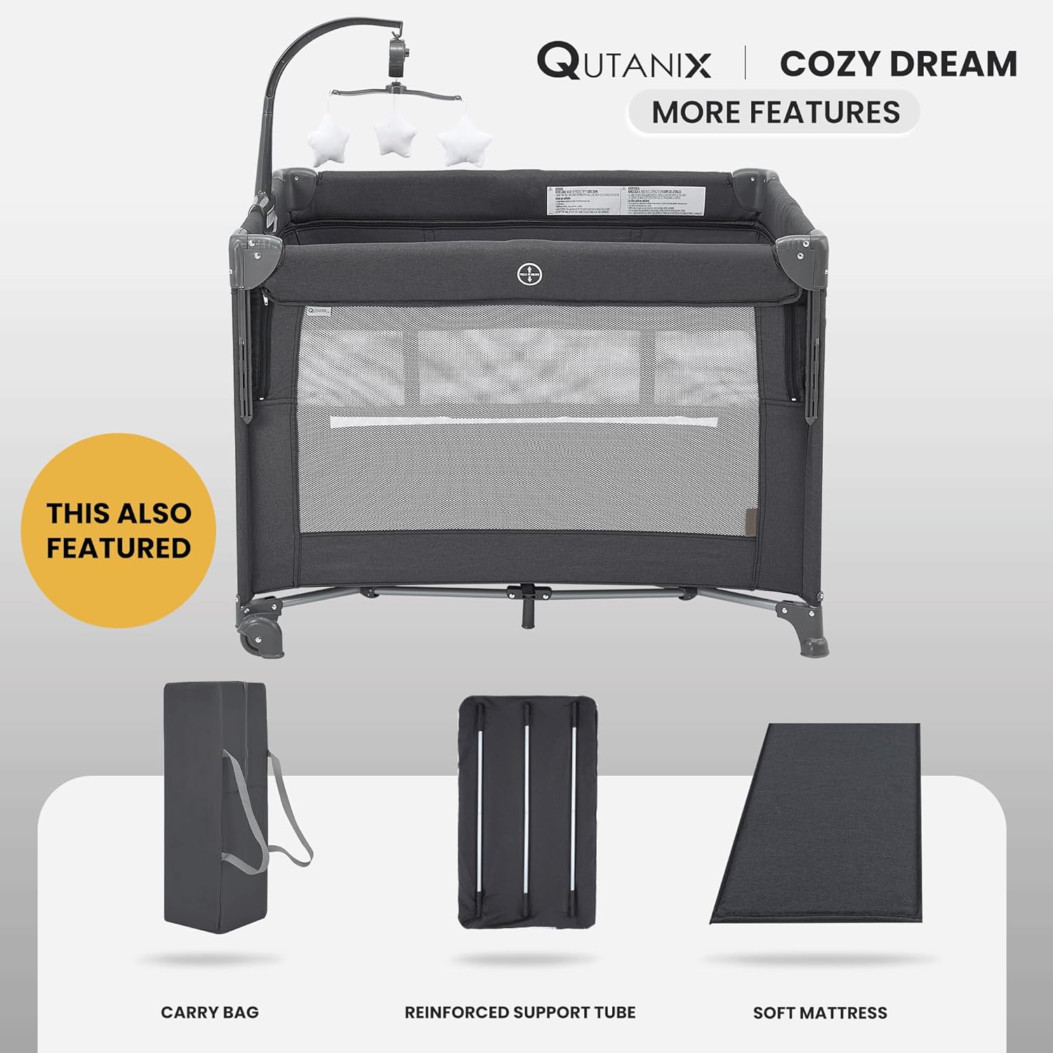 - CO-SLEEPING WITH YOUR BABY: Qutanix 2-in-1 baby bassinet can easily convert into a bedside bassinet sleeper designed for babies from 0 to 12 months and up to 33lbs, the collapsible side can be easily adjusted down which allows parents to check on, pick up, feed and comfort your baby during the night and it securely attached to the parent’s bed with 2 fastening straps.