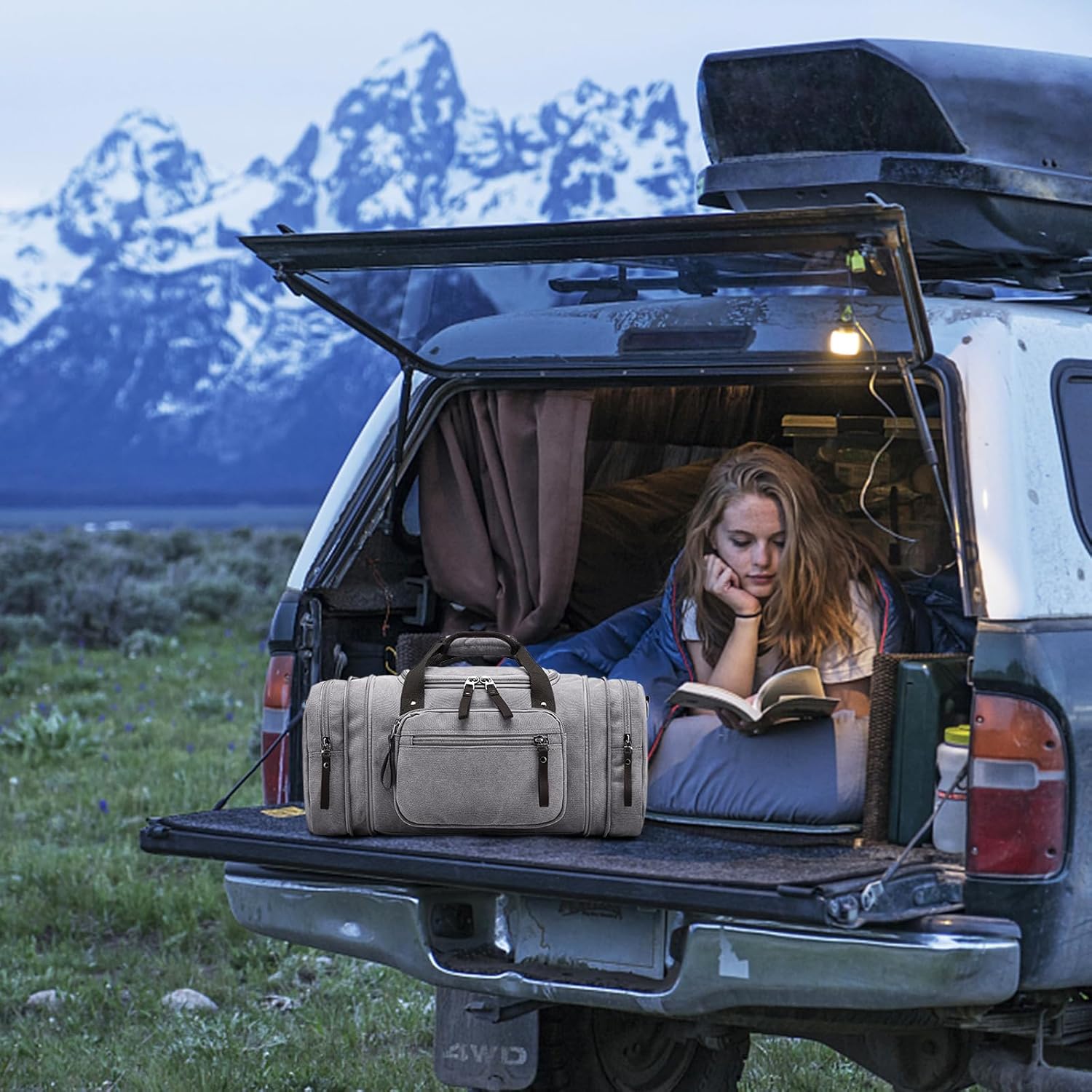 - 【Quality Material】The travel duffel bags are made of canvas material, abrasion and tear resistant, flexible zipper for quick opening and closing, padded base design keeps the contents of the canvas duffle bag protected from rough terrain and hard knocks