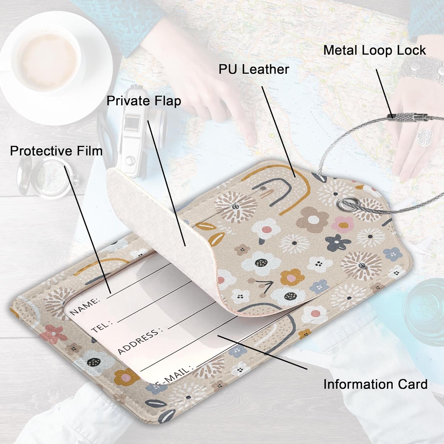 2Pcs Luggage Tag for Suitcase Boho Flowers Rainbow Cute Suitcase Tag with Privacy Flap & Name ID Label & Metal Loop,Travel Bag Luggage Tags for Women