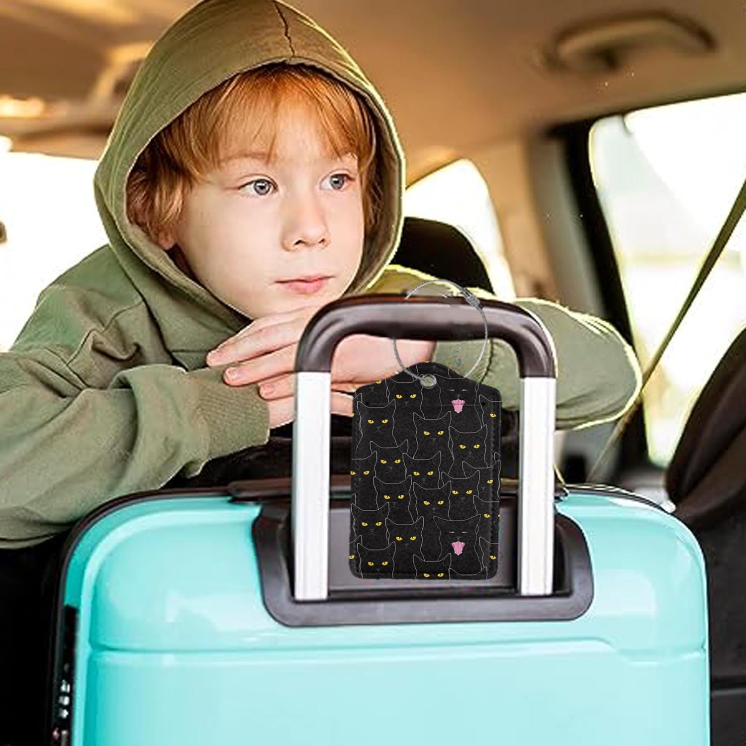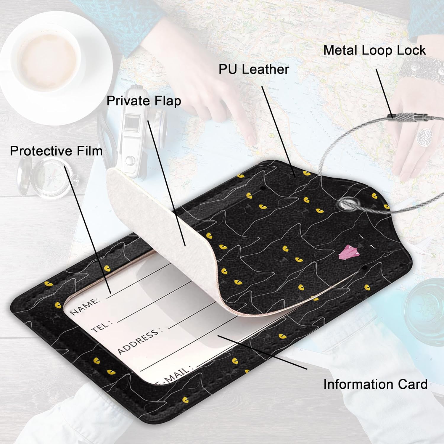 2Pcs Luggage Tag for Suitcase Black Cat Cute Suitcase Tag with Privacy Flap & Name ID Label & Metal Loop,Travel Bag Luggage Tags for Women