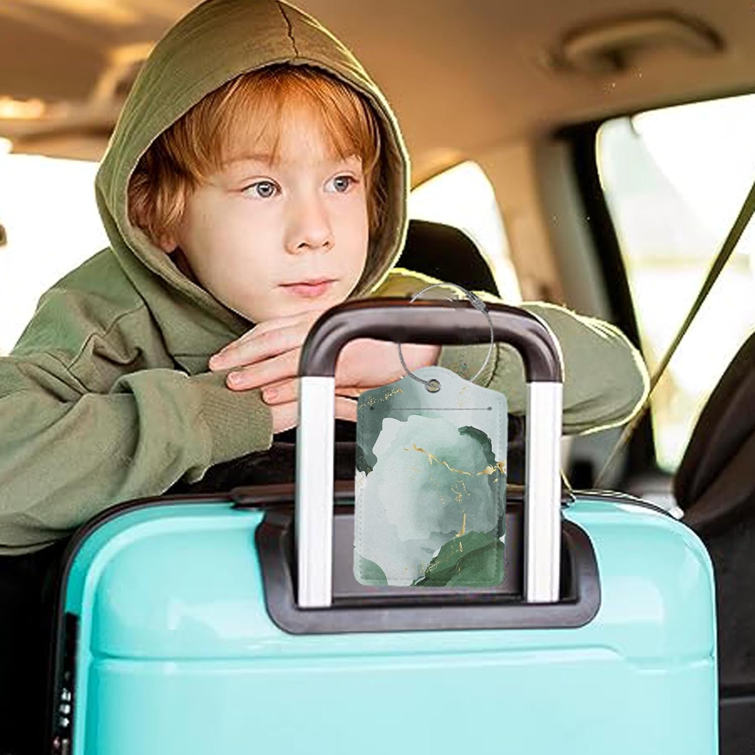 2Pcs Luggage Tag for Suitcase Green Ink Abstract Marble Cute Suitcase Tag with Privacy Flap & Name ID Label & Metal Loop,Travel Bag Luggage Tags for Women