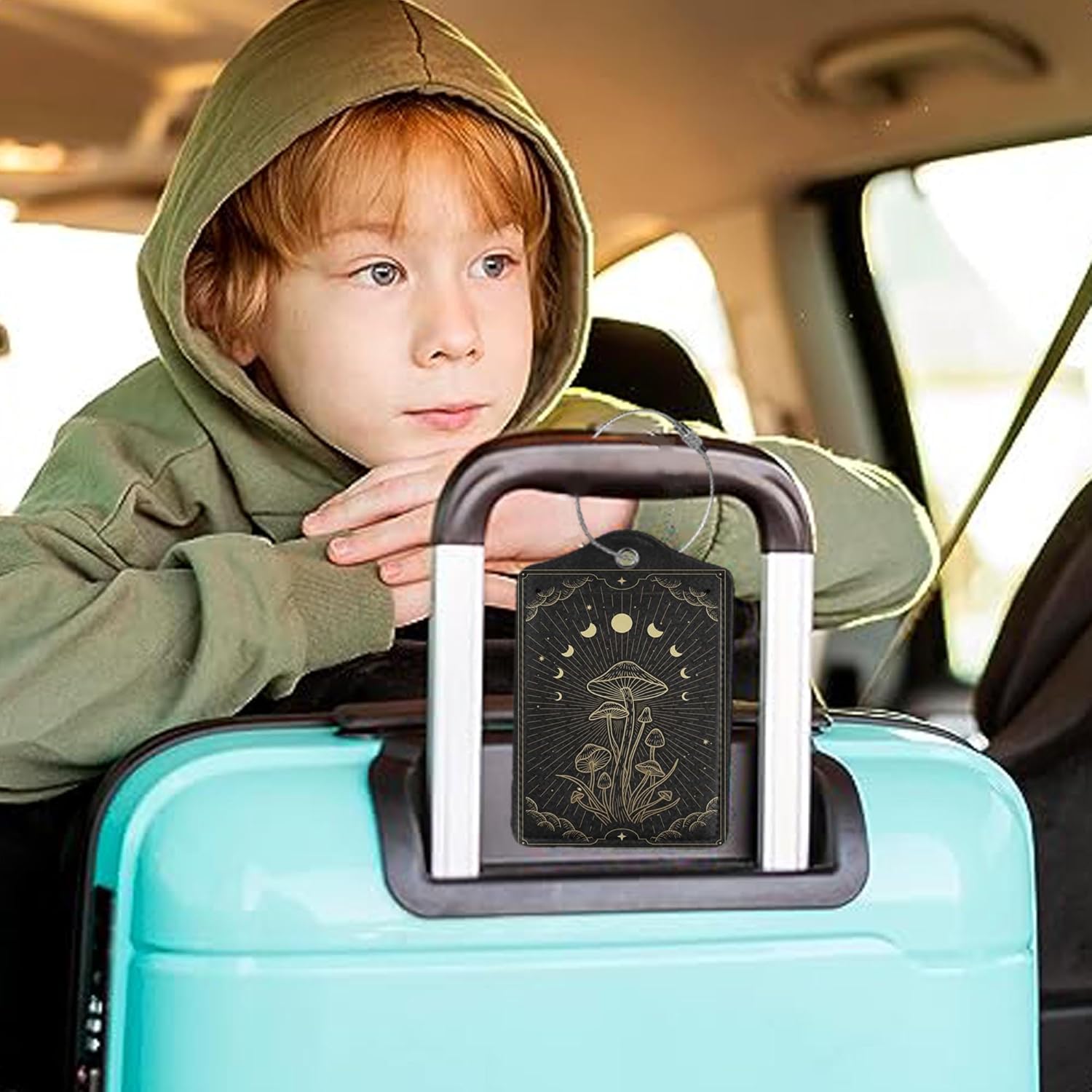 Zodiac Moon Phase Luggage Tag for Suitcase, Mushroom Luggage Tag with Privacy Flap & Name ID Label & Metal Loop, Travel Suitcase Tags for Women