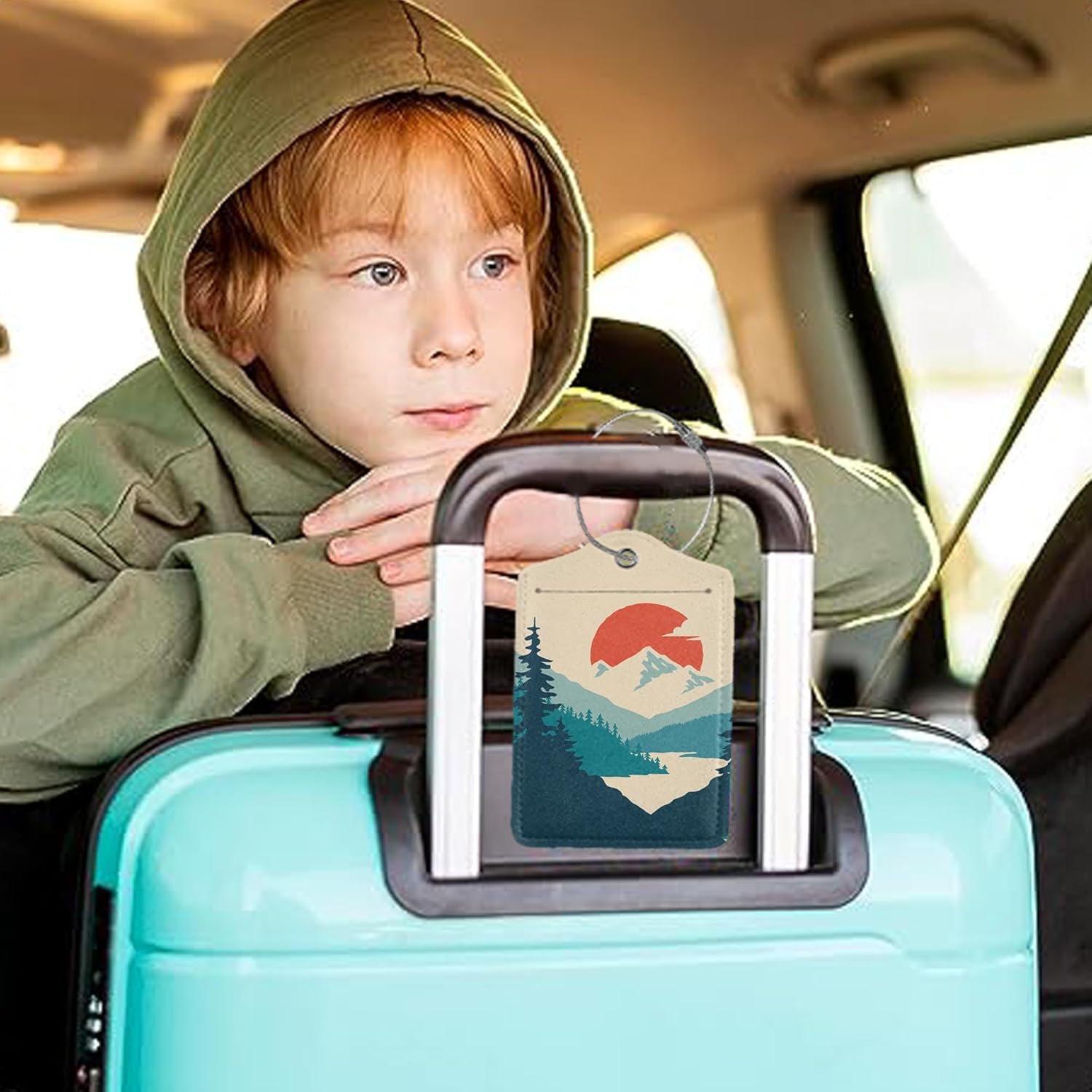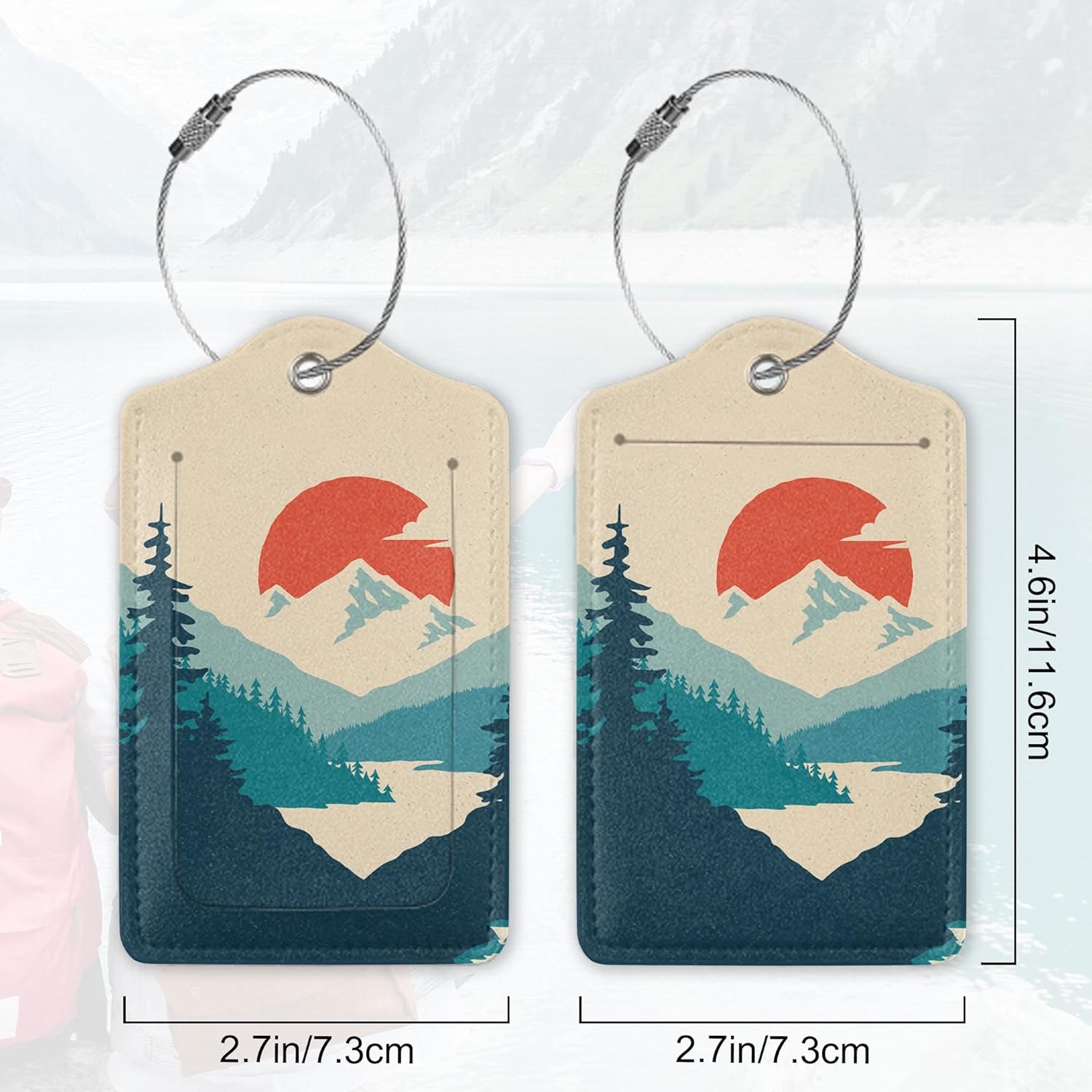 Luggage Tag for Suitcase, Mountain Sun Forest Design with Privacy Flap & Name ID Label & Metal Loop, 2 Pack