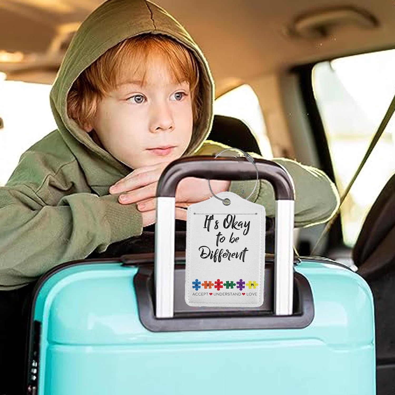 2Pcs Luggage Tag for Suitcase Autism Awareness Cute Suitcase Tag with Privacy Flap & Name ID Label & Metal Loop,Travel Bag Luggage Tags for Women