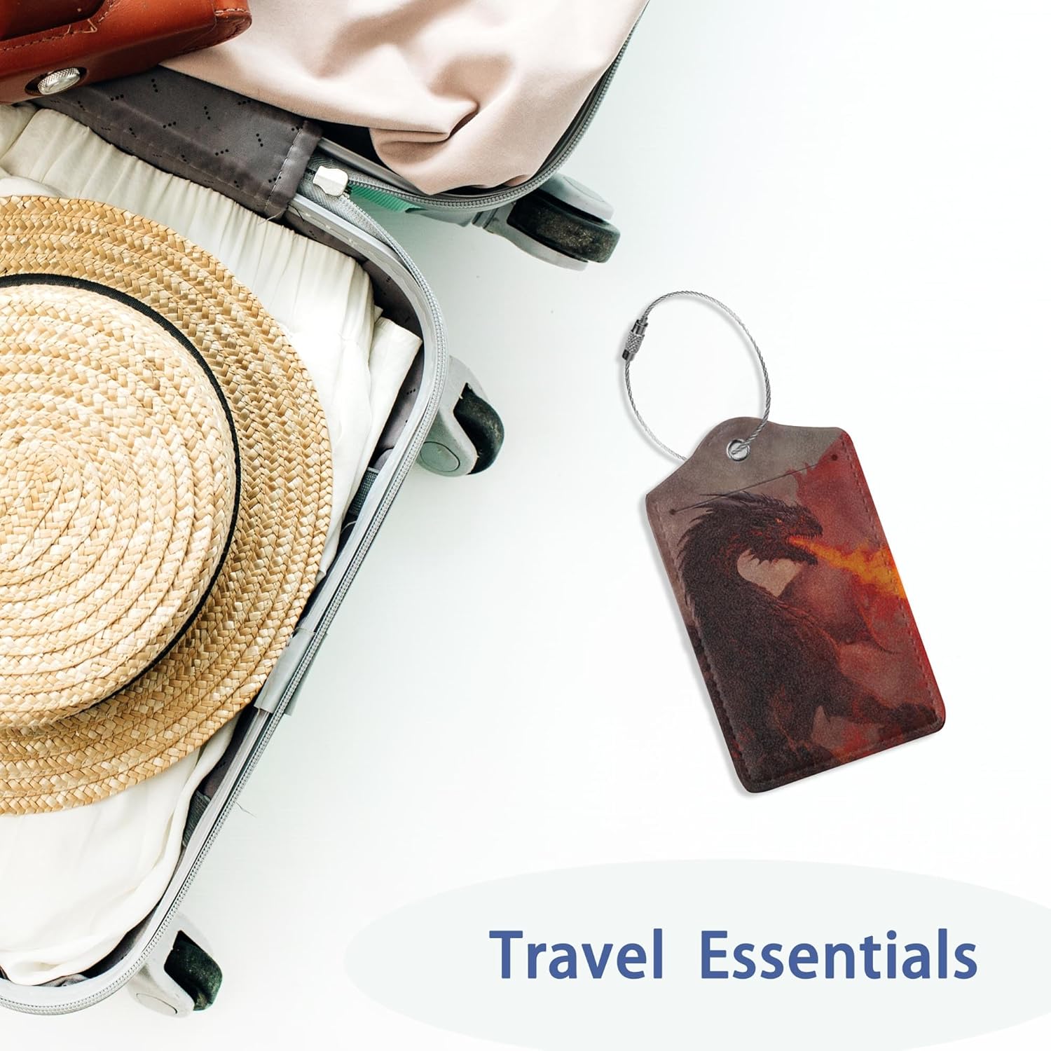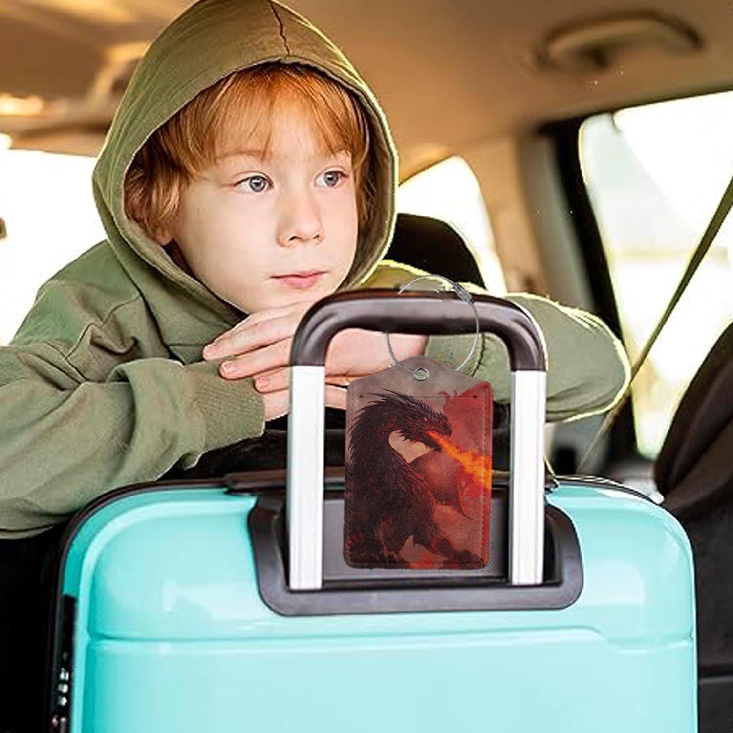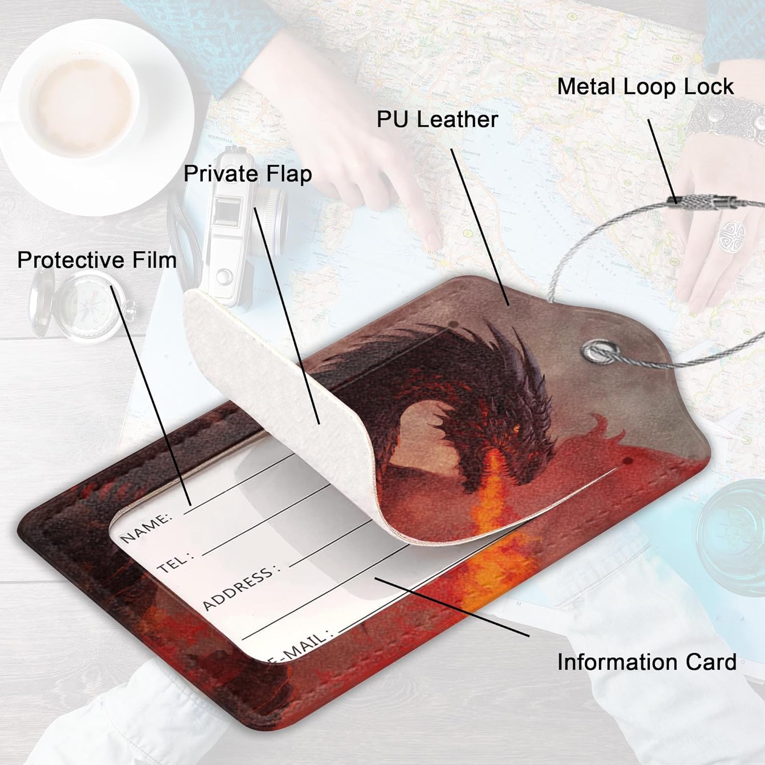 2Pcs Luggage Tag for Suitcase Trippy Fire Dragon Cute Suitcase Tag with Privacy Flap & Name ID Label & Metal Loop, Travel Bag Luggage Tags for Women