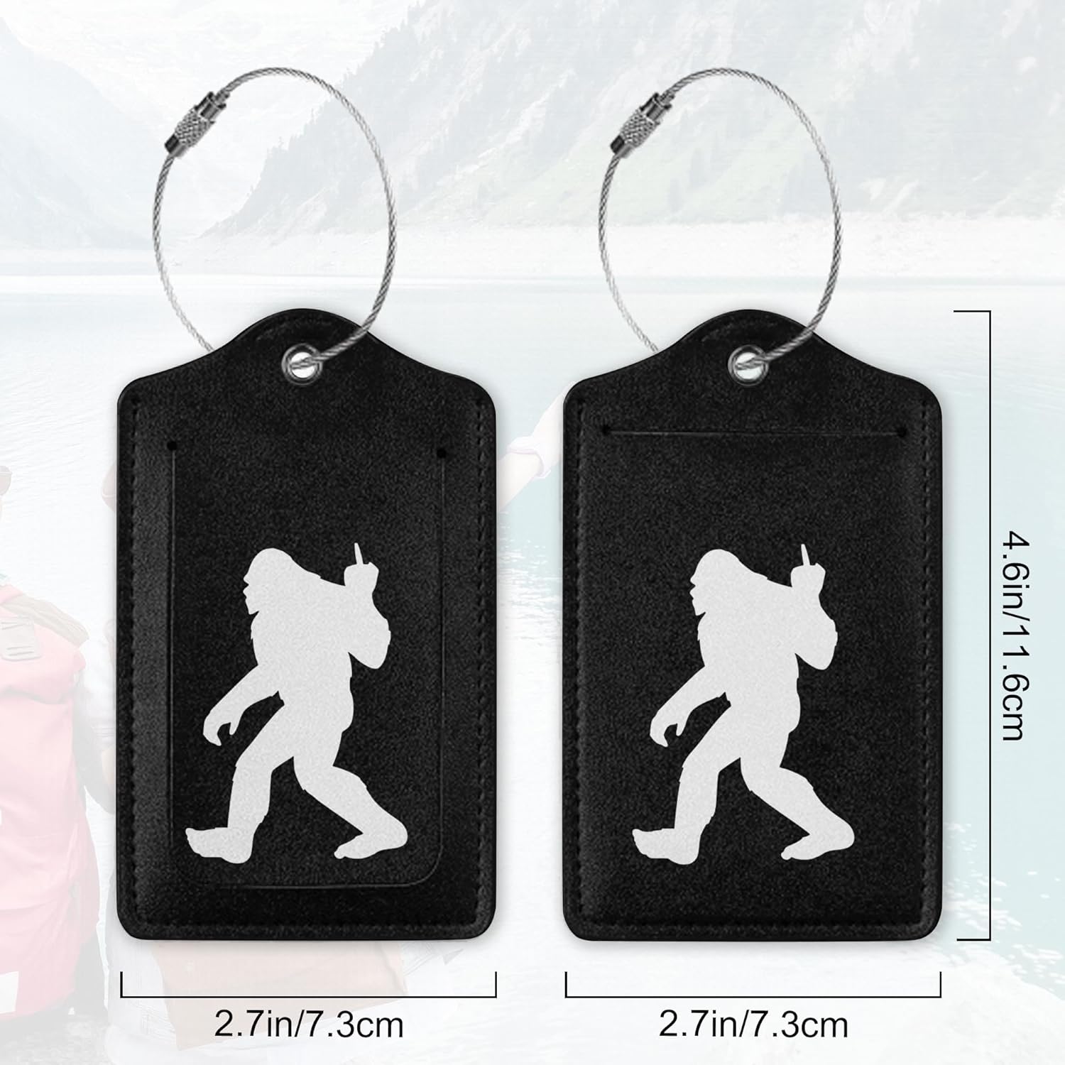 2Pcs Luggage Tag for Suitcase Black Sasquatch Cute Luggage Tag with Privacy Flap & Name ID Label & Metal Loop,Travel Suitcase Tags for Women