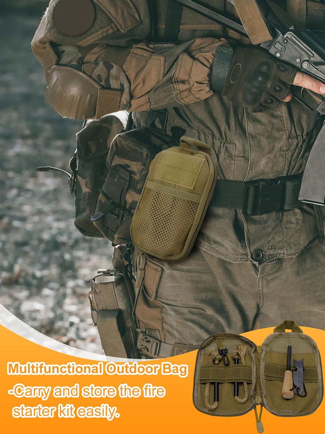 - Wide Ranges of Application: The fire starter survival tool is mainly suitable for outdoor activities such as camping, hiking, survival training, etc., can provide you with the ability of fire and cooking, and can also be used for emergency preparation.