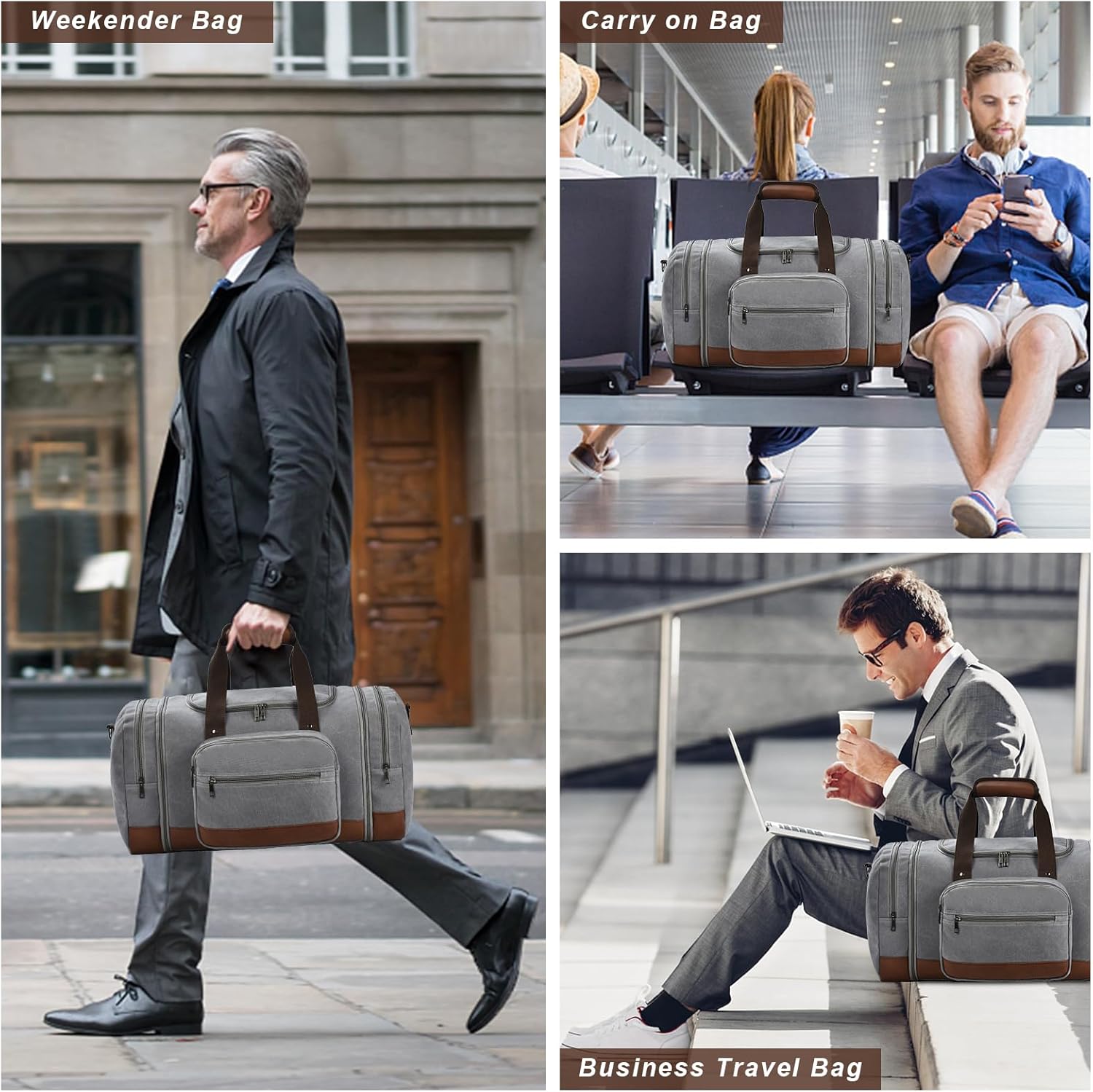 Litvyak Duffle Bag for Travel, 50L Canvas Travel Duffel Bags Overnight Weekend Gym Carry On Luggage Bag for Men & Women(Grey+Toiletry Bag)