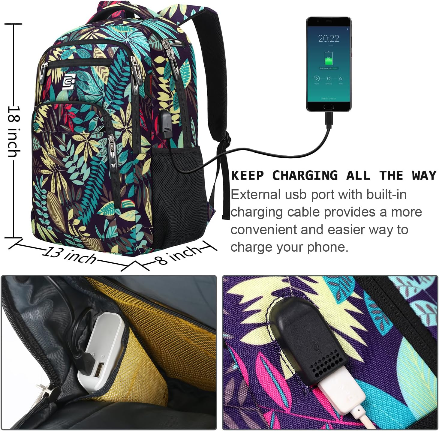 - USB PORT DESIGN: With built in USB charger outside and built in charging cable inside,this usb backpack offers you a more convenient way to charge your phone while walking. Headphone Jack: you can listen to your favorite music on the go hands-free.