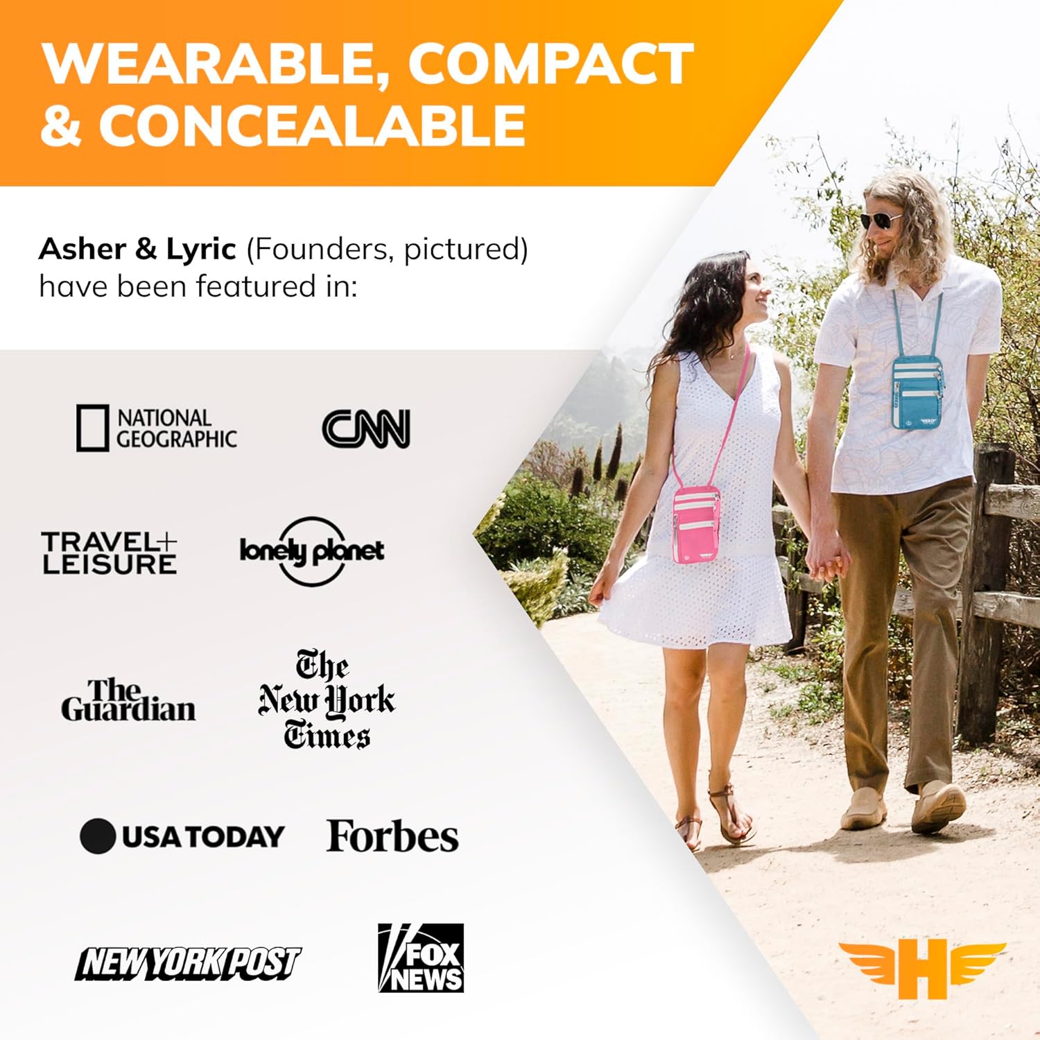 Hero Travel Supply Neck Wallet, RFID Blocking Passport Holder, Easy to Conceal Pouch (Hot Pink)