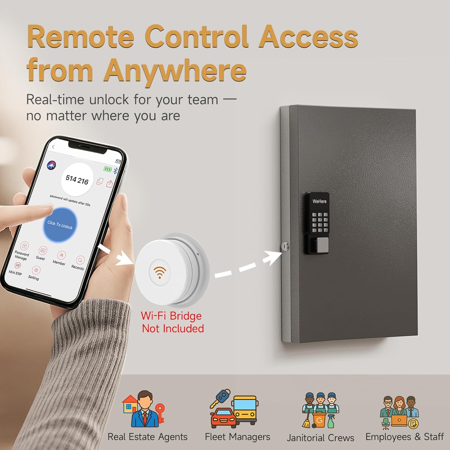- 【KEY STORAGE BOX】This key storage box use OTP technology and does not require an internet connection. Being able to work offline makes our security products suitable for occasion with weak or no WiFi .Of course,you can buy another WiFi device to unlock it.