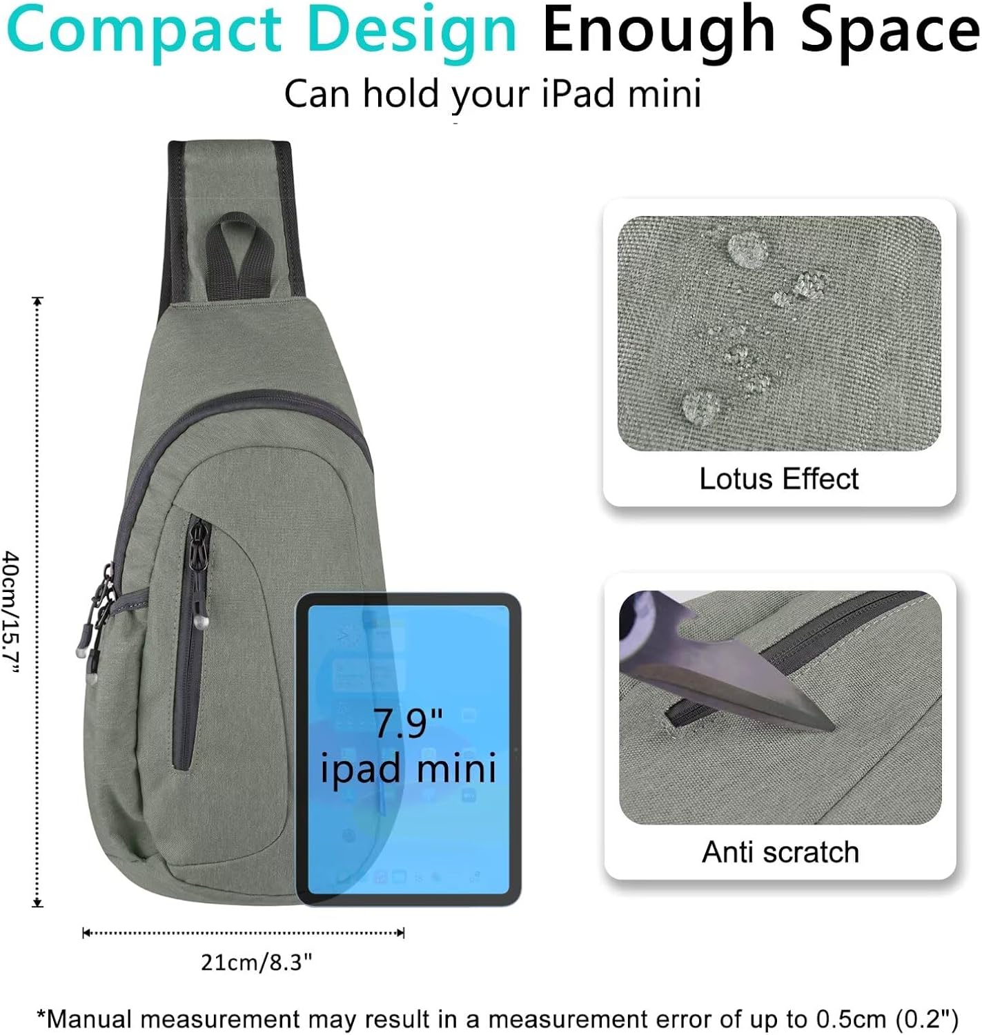 - Small Size: 15.7*8.3*4 inches. 5 oz lightweight. Easy to carry. Enough to put your necessary stuffs in the sling backpack. Great for traveling, cycling, running, hiking, climbing, walking the dog or any other outdoor sports