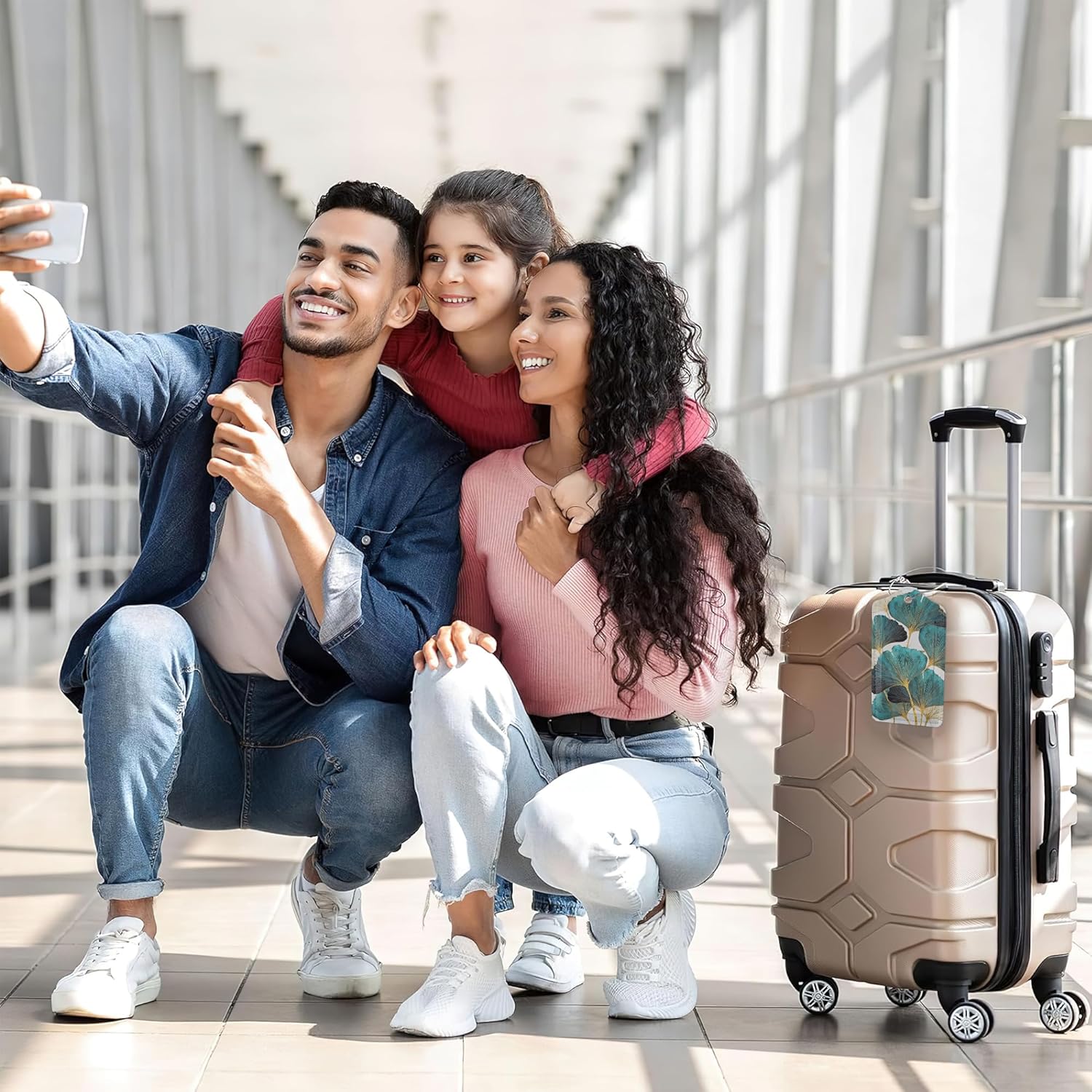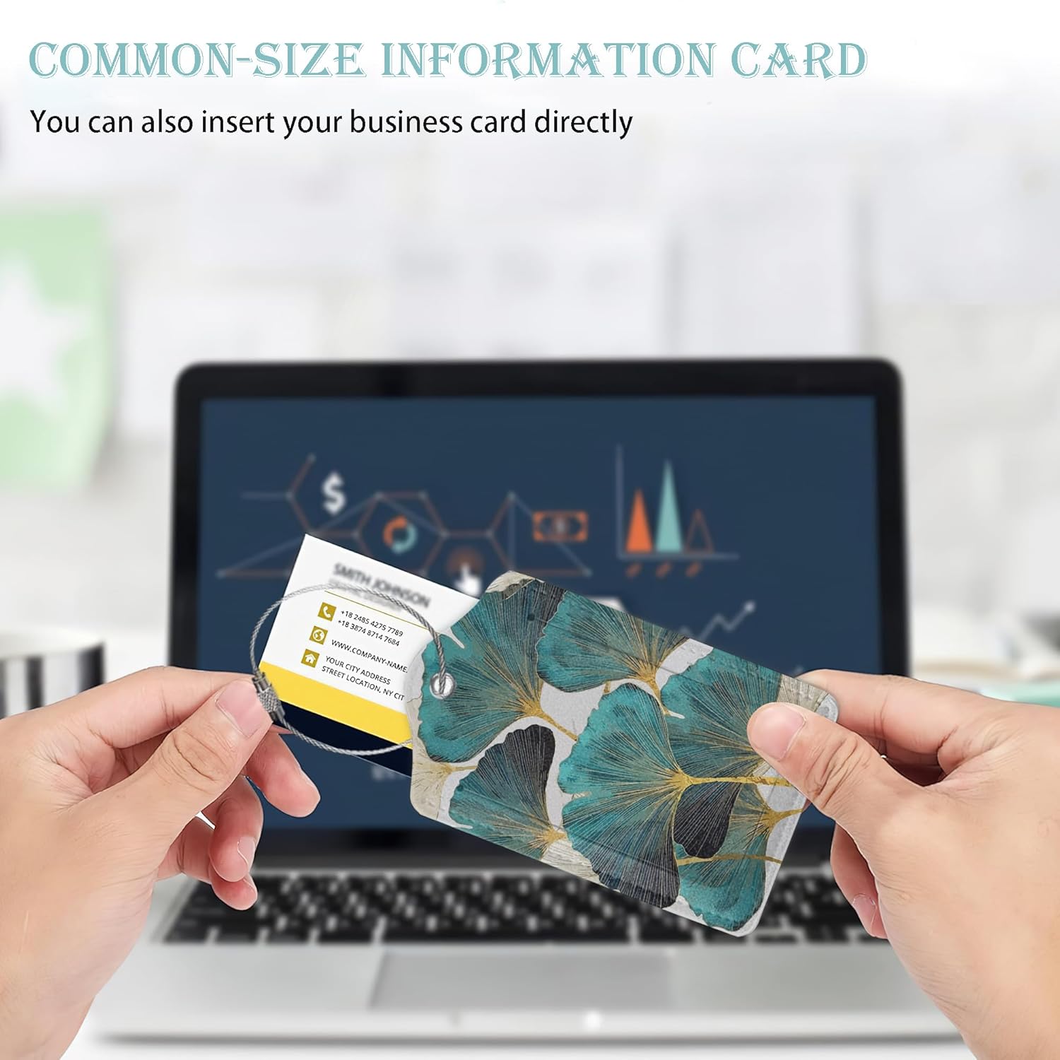 2 Pack Luggage Tag for Suitcases Green Ginkgo Leaf PU Leather Bag Travel Suitcase ID Identifier Baggage Tags for Women Men Travel