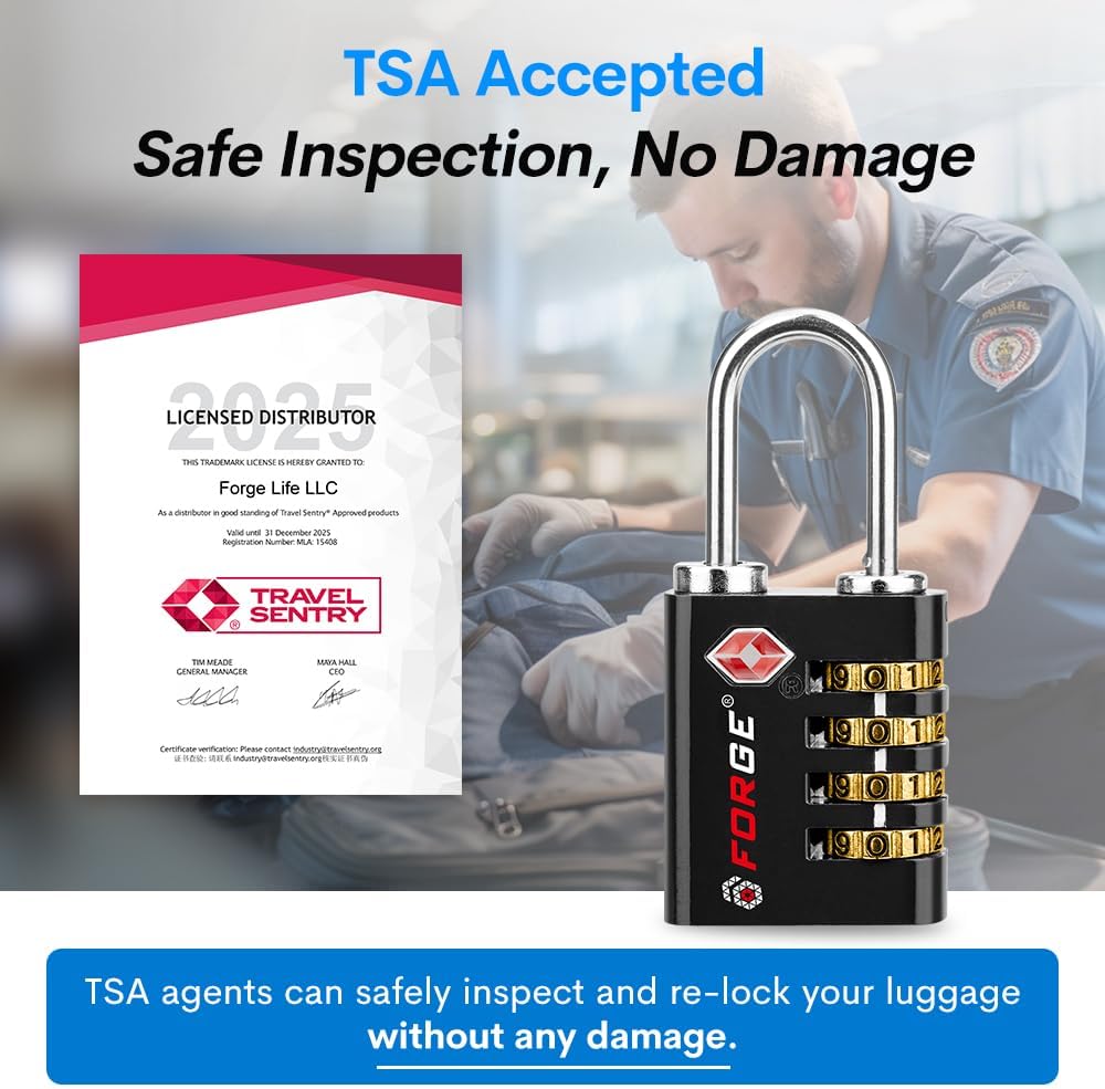 - TSA Approved Luggage Locks: Forge TSA approved locks are recognized by the TSA, with two TSA logos on the front and back of the lock, making them hassle-free for airport security inspections. Forge travel locks can be used on a wide variety of items besides suitcases or luggage. These locks can be used on a toolbox, pelican case, briefcase, gym locker, purse, backpack or laptop bag.