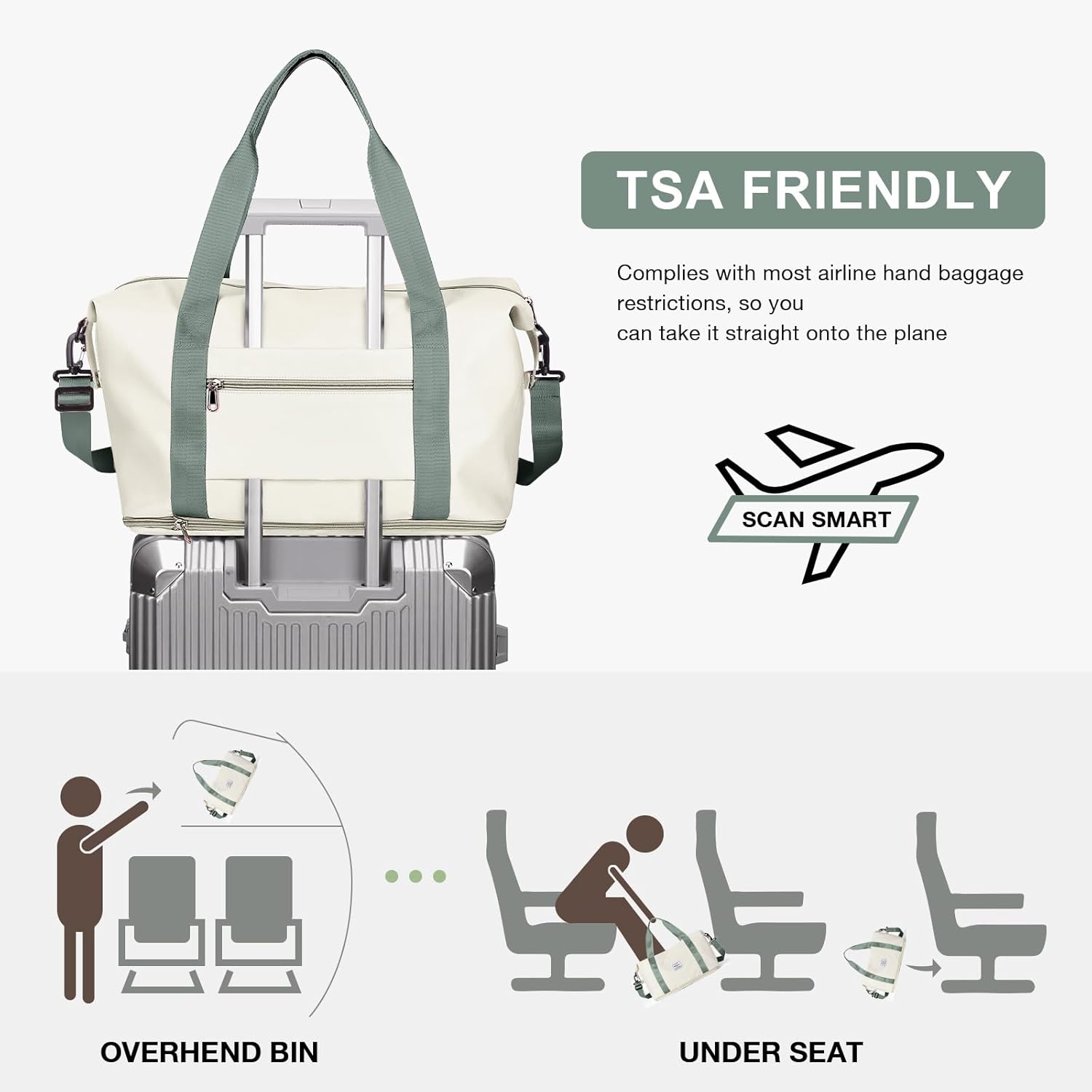 - 【Airplane Friendly Travel Bag】The perfect carry-on compliant bag for airline travel. Integrated trolley sleeve slides over rolling luggage handle making airport travel a breeze. Your ideal overnight weekend boarding bag for business or personal travel.