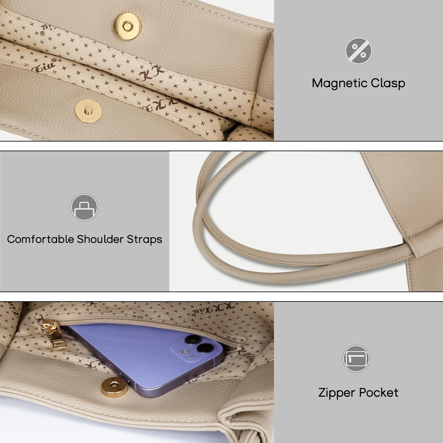 - Spacious Interior, Effortless Carry: Whether it's work documents, a laptop(Maximum 15" Laptop), or daily essentials, our tote bag has you covered. With zipper pockets inside, your belongings stay security and easily accessible.