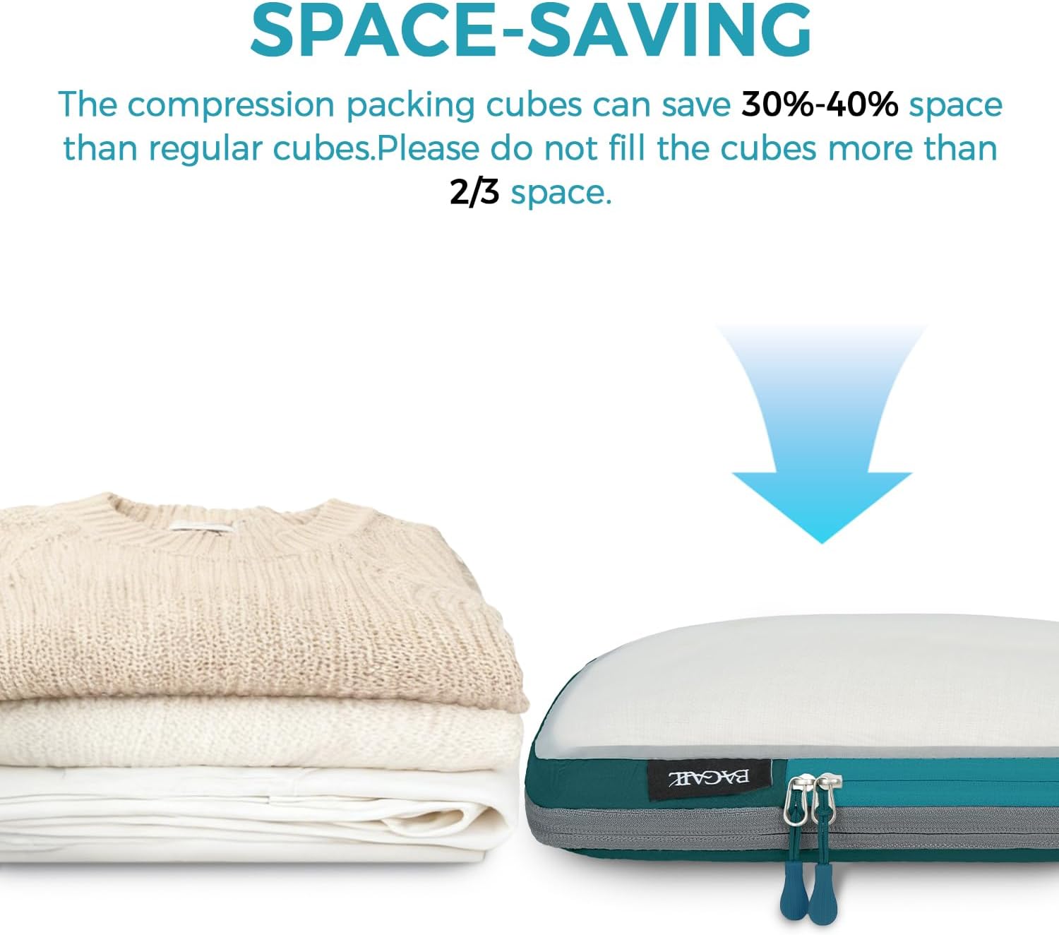 - Space Saving: Save up to 50% space by compressing the packing cubes via the exterior compression zippers; And all the zippers we use are SBS zippers, it makes sure the packing organizers could be opened and closed easily