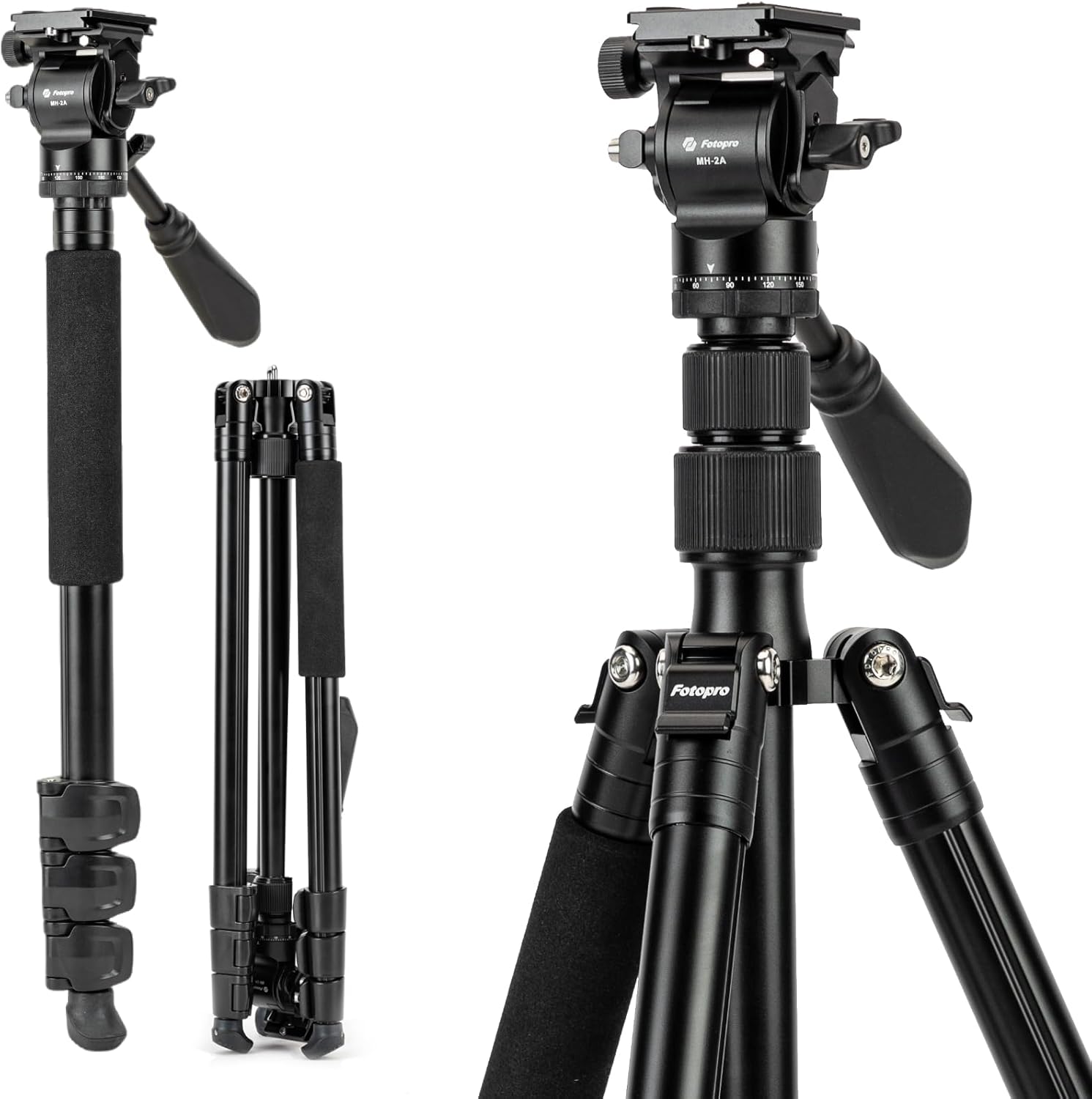 Fotopro 78" Camera Tripod, Aluminum Compact Travel Tripod and Monopod with 360° Fluid Head Quick Release Plate, Professional Video Tripod for DSLR, Load up 6.6lbs
