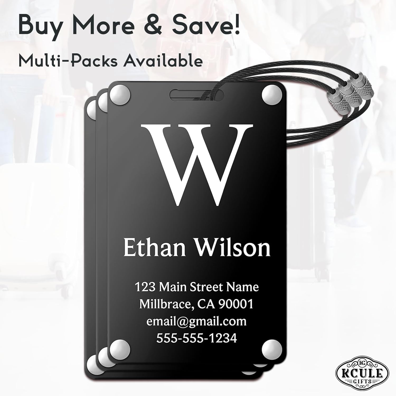 Personalized Luggage Tags: Custom Metal Luggage Tags for Suitcases, Backpacks and Bags with Your Personalized Text (Black)