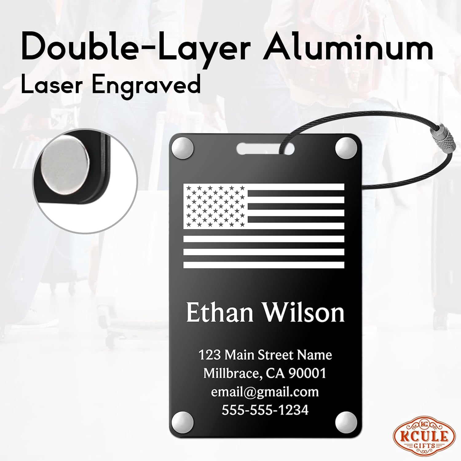 - DURABLE CONSTRUCTION: Crafted with heavy-duty, double-layer aluminum, our luggage tags for suitcase ensure durability and longevity, standing up to the rigors of travel.